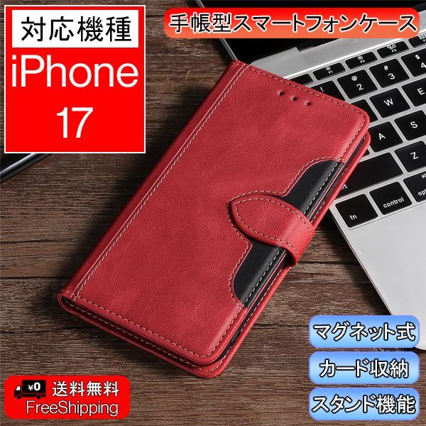 | 商品名 | iPhone 17 用 スマホケース 新品 手帳型 レザー 耐衝撃 アイフォン カード収納 携帯ケース ベルト スマホカバー レッド&ブラック |