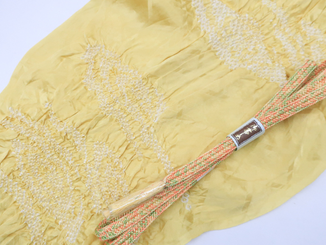リサイクル商品のため、帯揚げにシボ伸びがございますが、ご使用頂けると存じます。 |