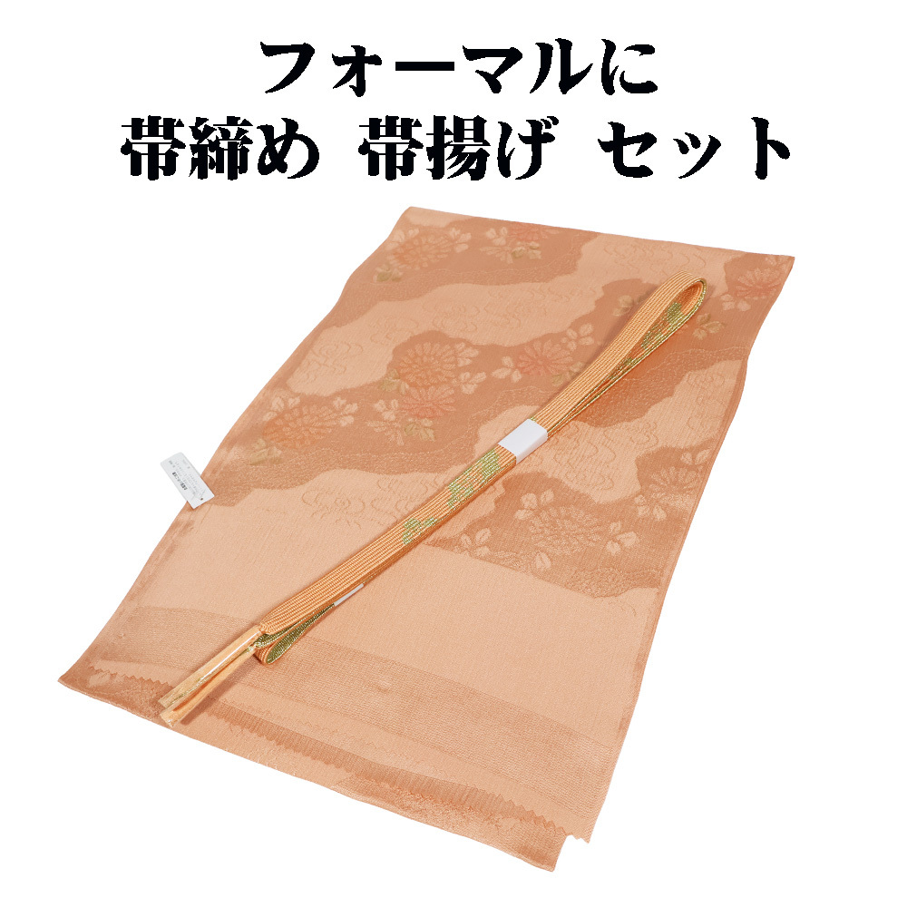 | 訪問着用 高麗帯締めと友禅帯揚げのセット 新品 帯揚げ サーモン地菊花流水柄 帯締め 手組紐 平 サーモンに金糸の編み 新品 | |