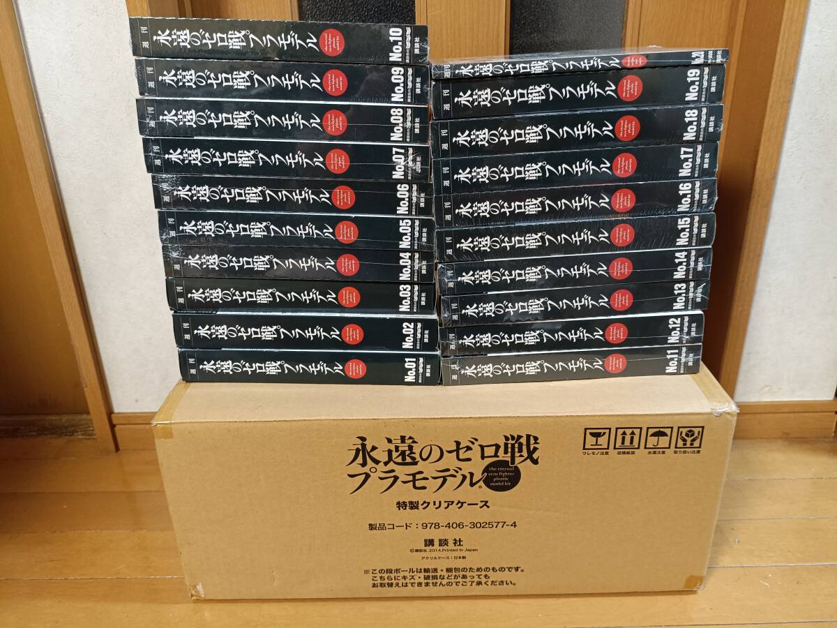 2014年発行、講談社「週刊 永遠のゼロ戦プラモデル」全20号と、ディスプレイ用の専用クリアケース(479mm×329mm×162mm)のセットです。