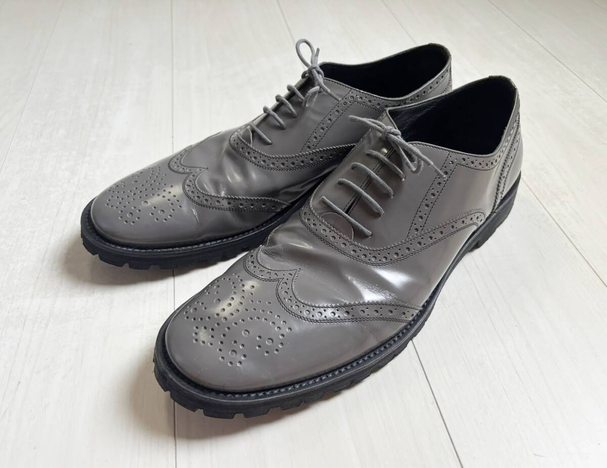 miu miu ミュウミュウ ウイングチップ シューズ レザー 10 28㎝ グレー ビブラム コマンド ソール Wingtip Leather Shoes ▼1002