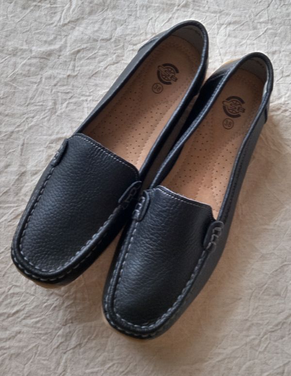 訳あり 新品 24cm レディース 本革 ドライビングシューズ ローファー スリッポン ブラック 541 No.1001