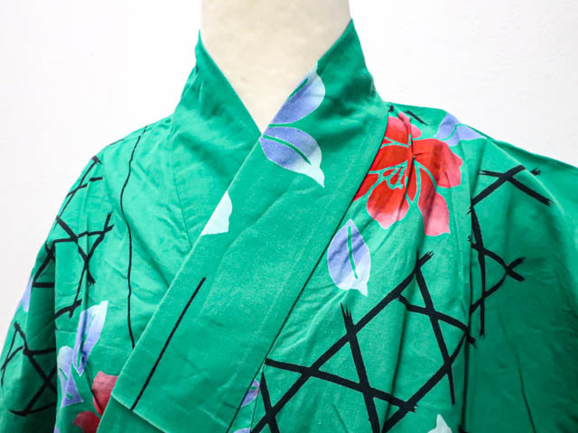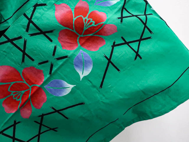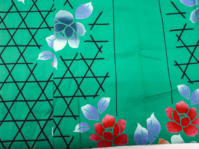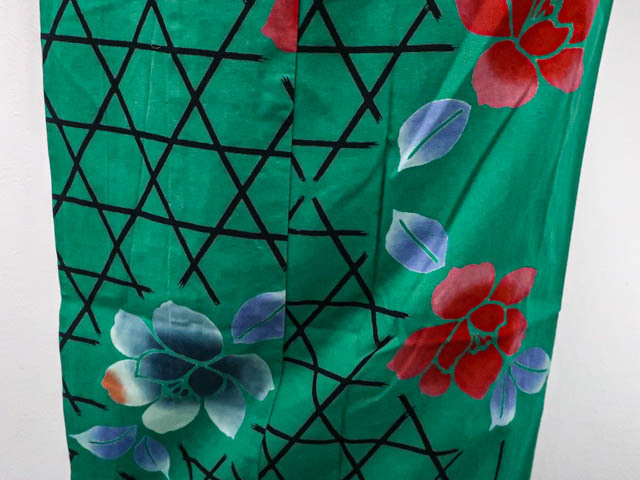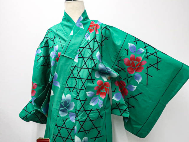 リサイクル商品のため、使用感がございます。 衿にスレがございますが着用可能なお品です。 地色は緑です。 1枚目の画像が近いお色かと思われます。 素材は正絹です。 |