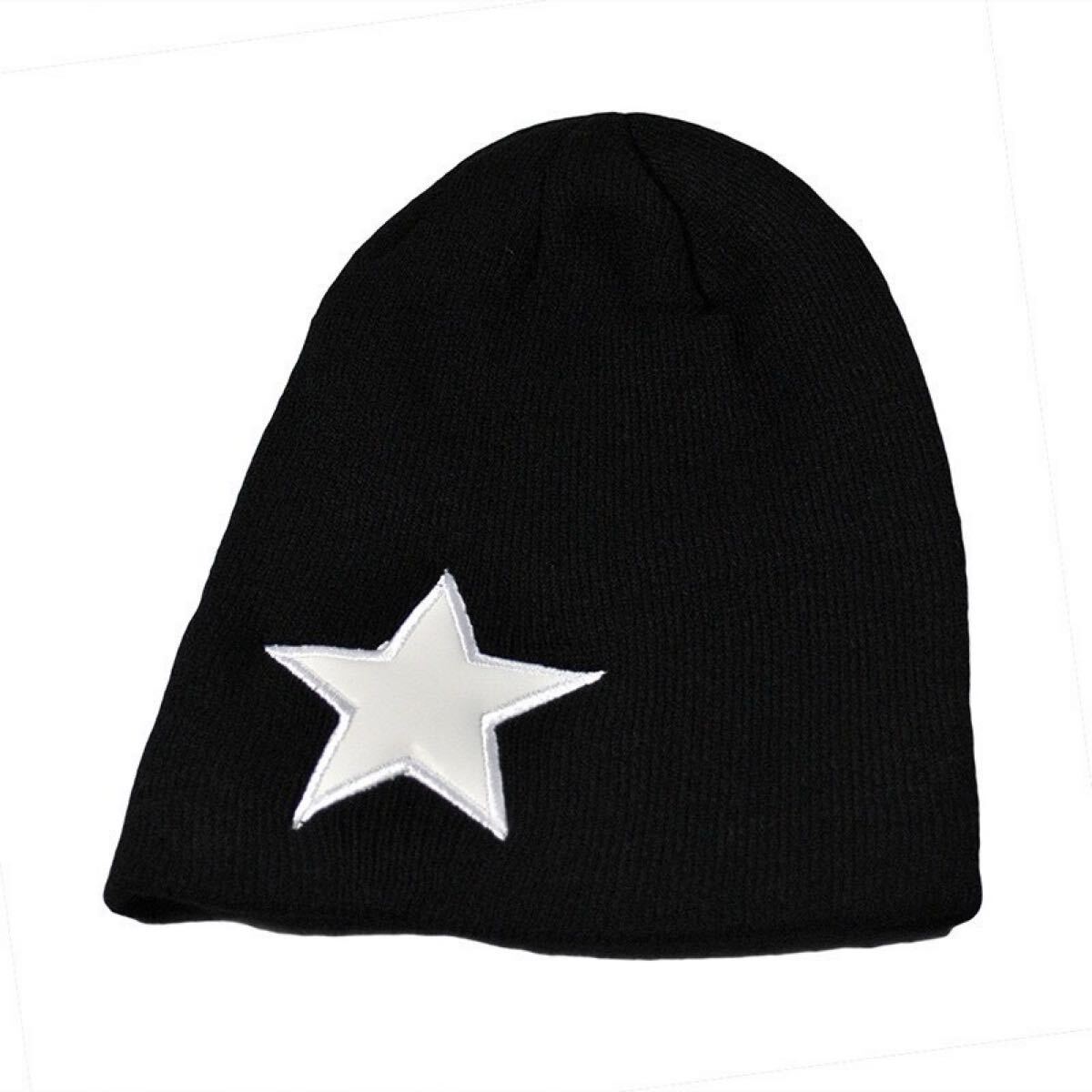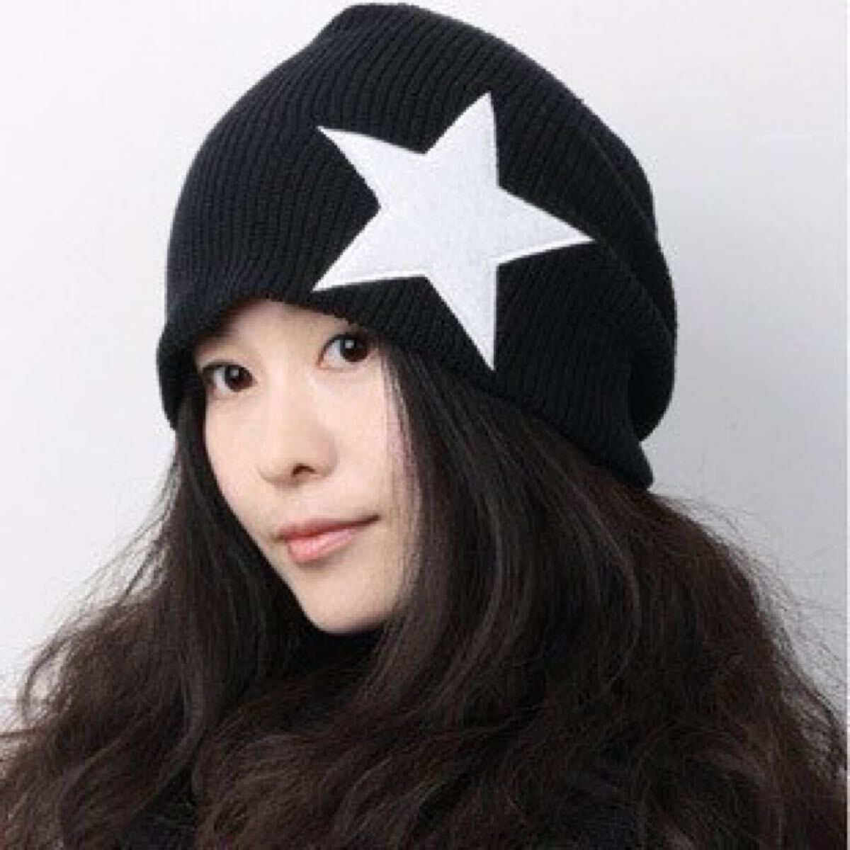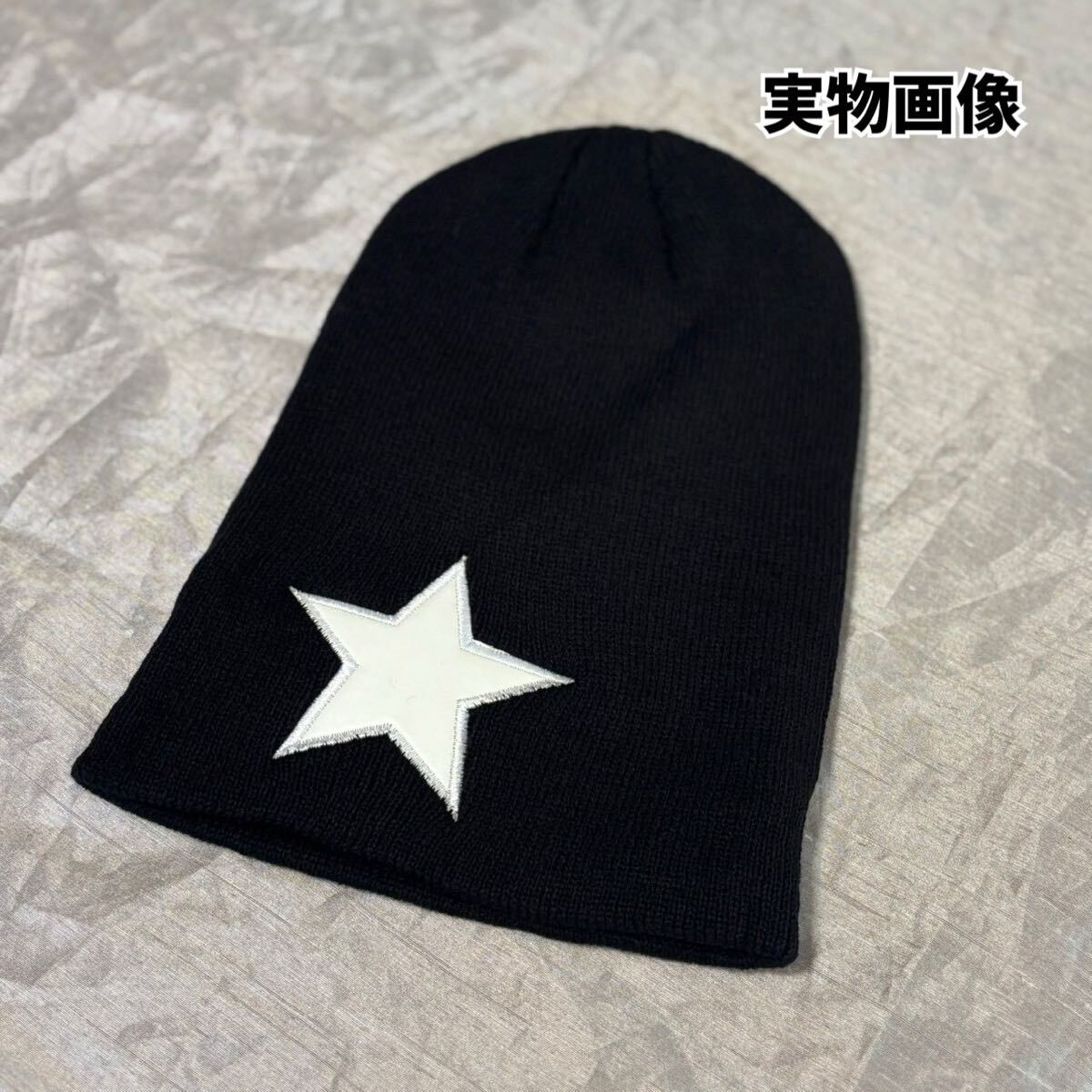 星柄 ニット帽 ビーニー キャップ ブラック レディース 深め スター メンズ