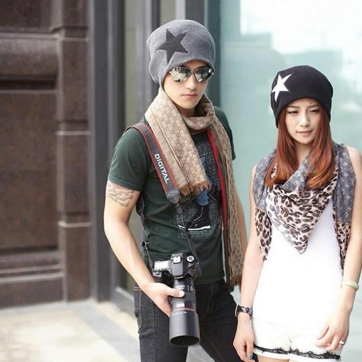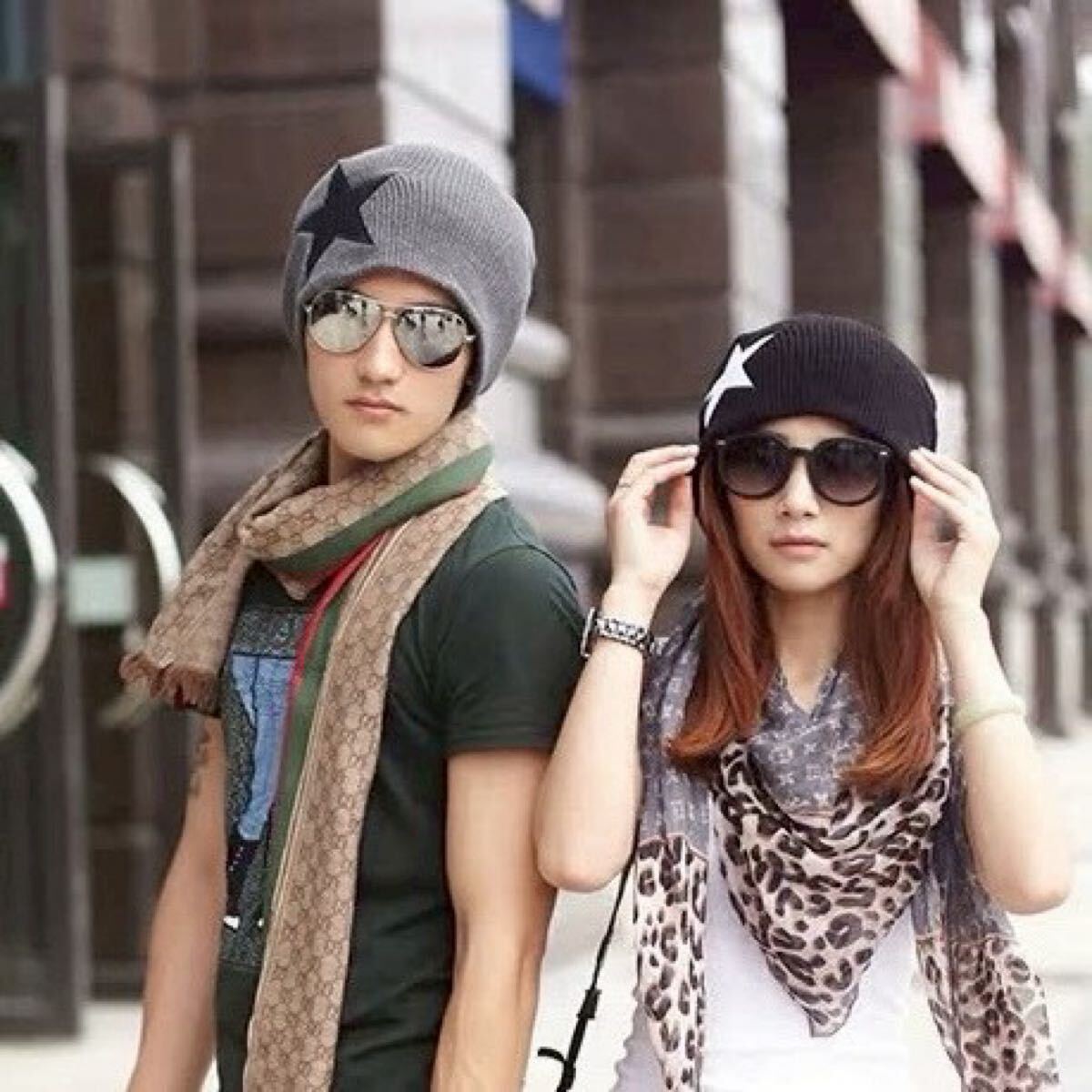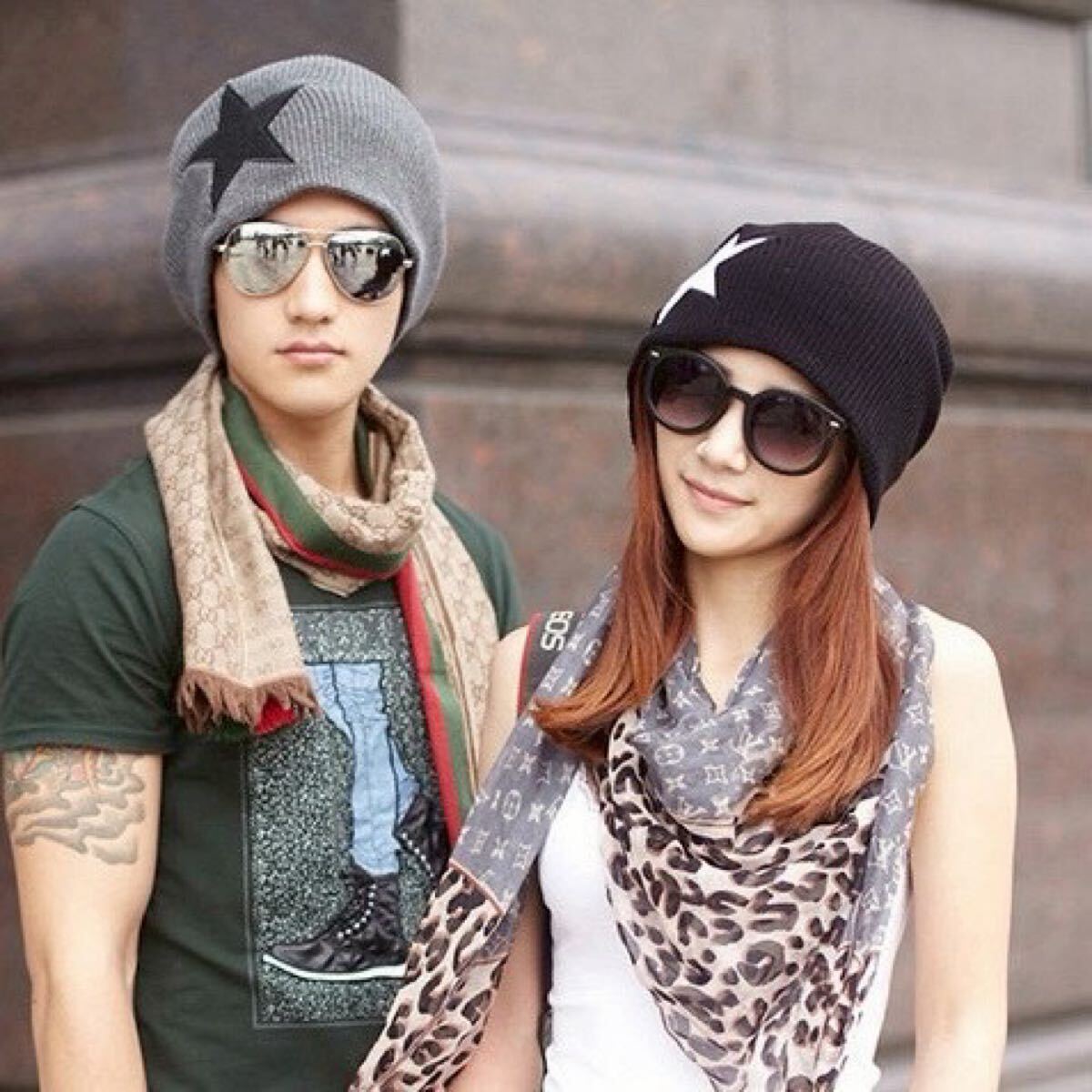 星柄 ニット帽 ビーニー キャップ ブラック レディース 深め スター メンズ