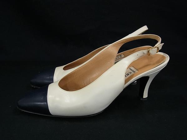 CELINE セリーヌ レザー ヒール パンプス 表記サイズ 35 1/2 (約22.5cm) 靴 シューズ レディース アイボリー系×ブラック系 DI3227