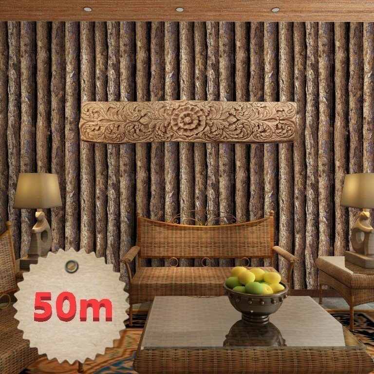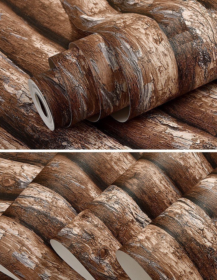 3D ウォールペーパー 【B253 ビンテージ 丸太 赤茶】 木目 53cm×50m 和モダン インテリア DIY のりなし 壁紙 クロス リメイク
