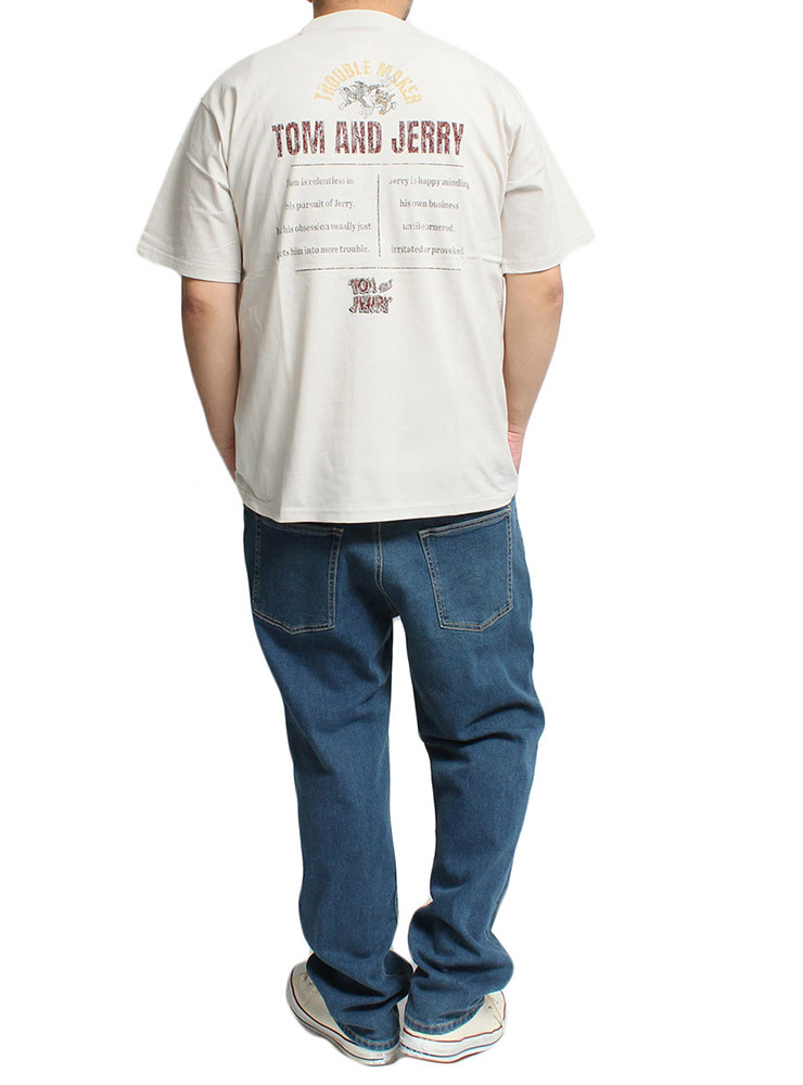 商品名 | 【新品】 4L アイボリー TOM AND JERRY トムとジェリー 半袖 Tシャツ メンズ 大きいサイズ ピグメント加工 プリント クルーネック カットソー |