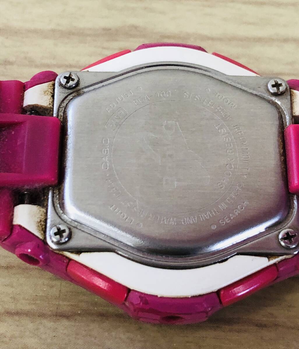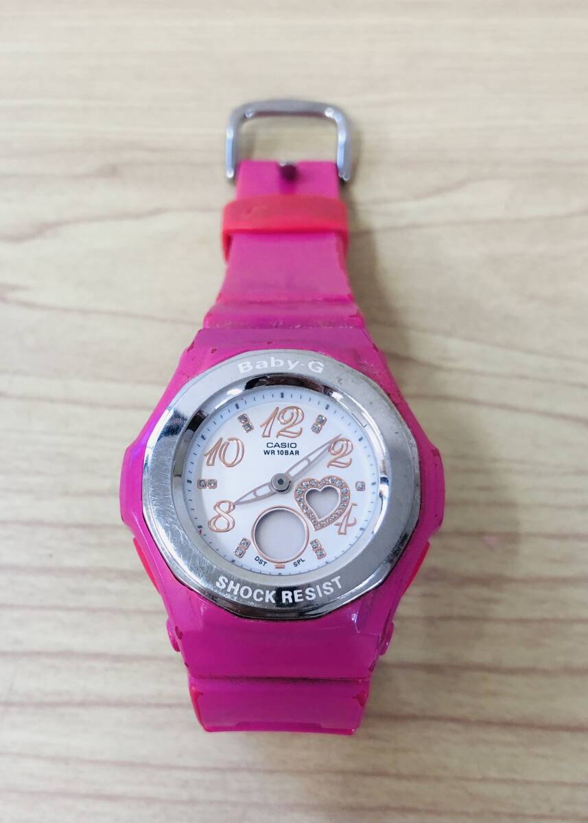 TO-9【中古・現状品】カシオ BGA-100 Baby-G/ベビーG アナデジ ピンク×ホワイト文字盤 QZ レディース腕時計 8750000 4BGT MSS ジャンク品