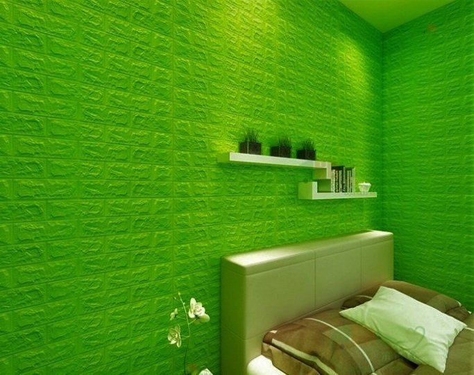 【10枚】高品質 3D クッション 壁 シール グリーン/深緑 レンガ調 糊付き リメイク 70×77cm 耐水 抗菌 傷防止