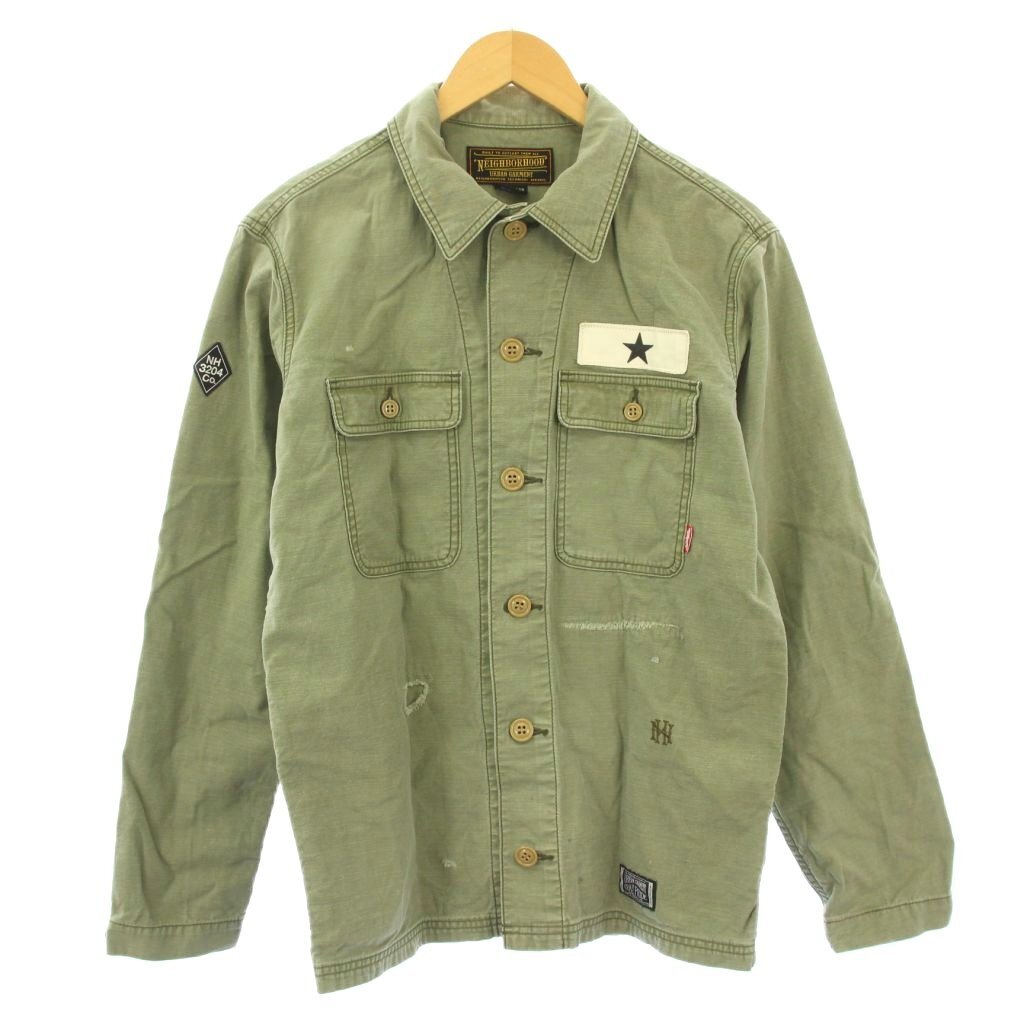 ネイバーフッド SAVAGE BDU C-SHIRT-LS ミリタリーシャツ 長袖 レギュラーカラー ワッペン ダメージ加工 M カーキ 101GRNH-SHM01