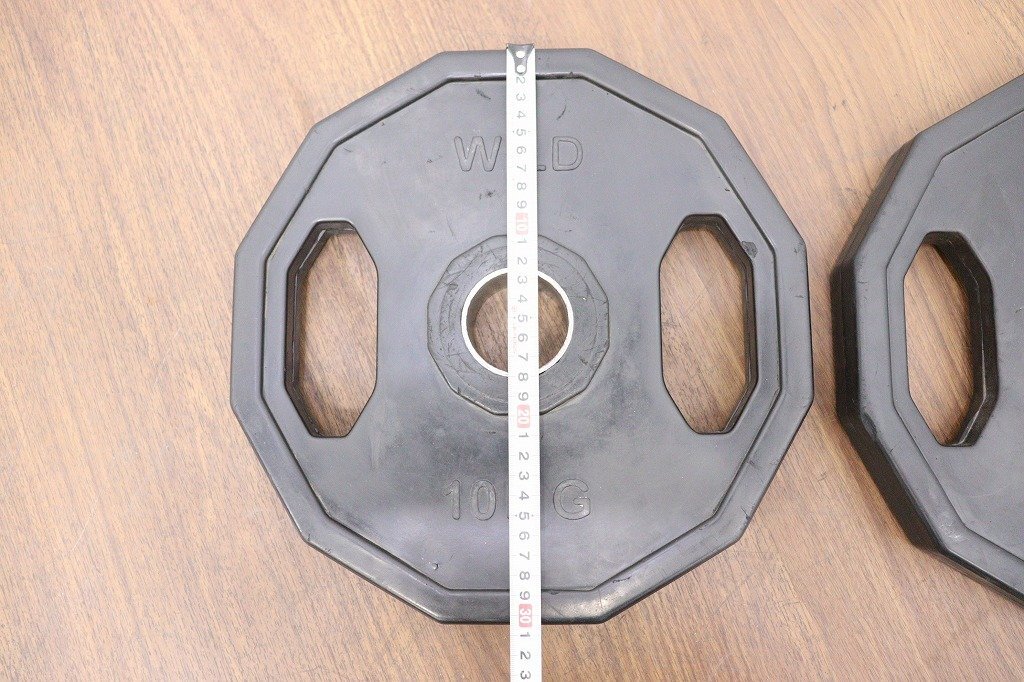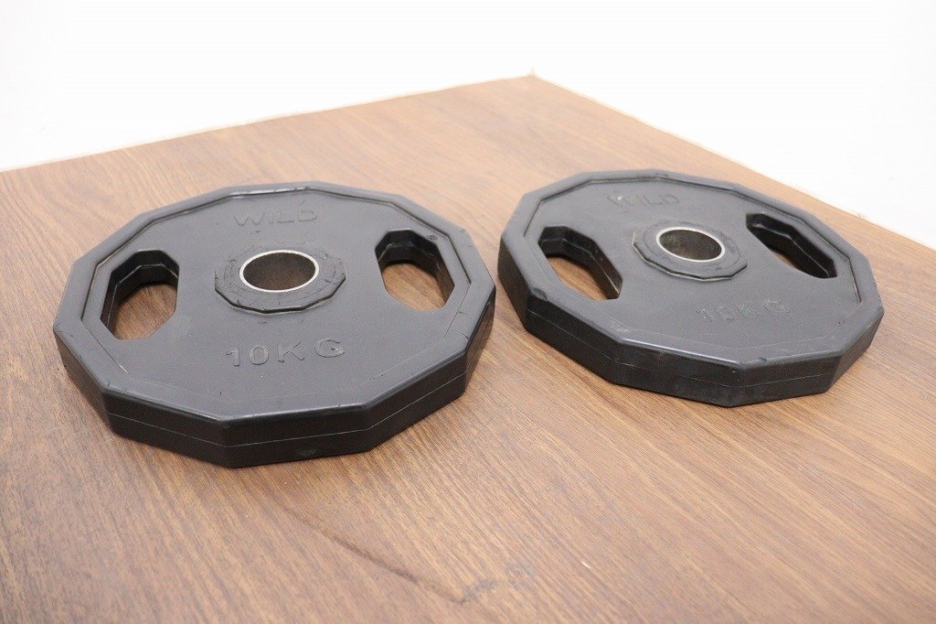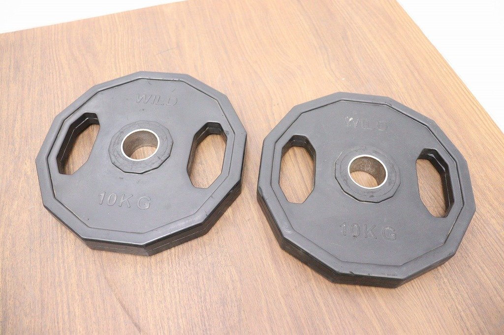 WILDFIT◆オリンピックラバーダンベル◆10kg×2枚◆計20kg◆ウェイトトレーニング◆穴径50mm◆現状品 | ||