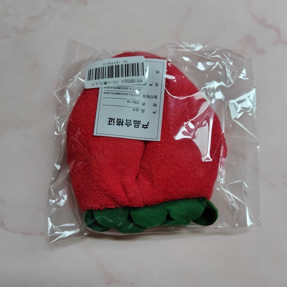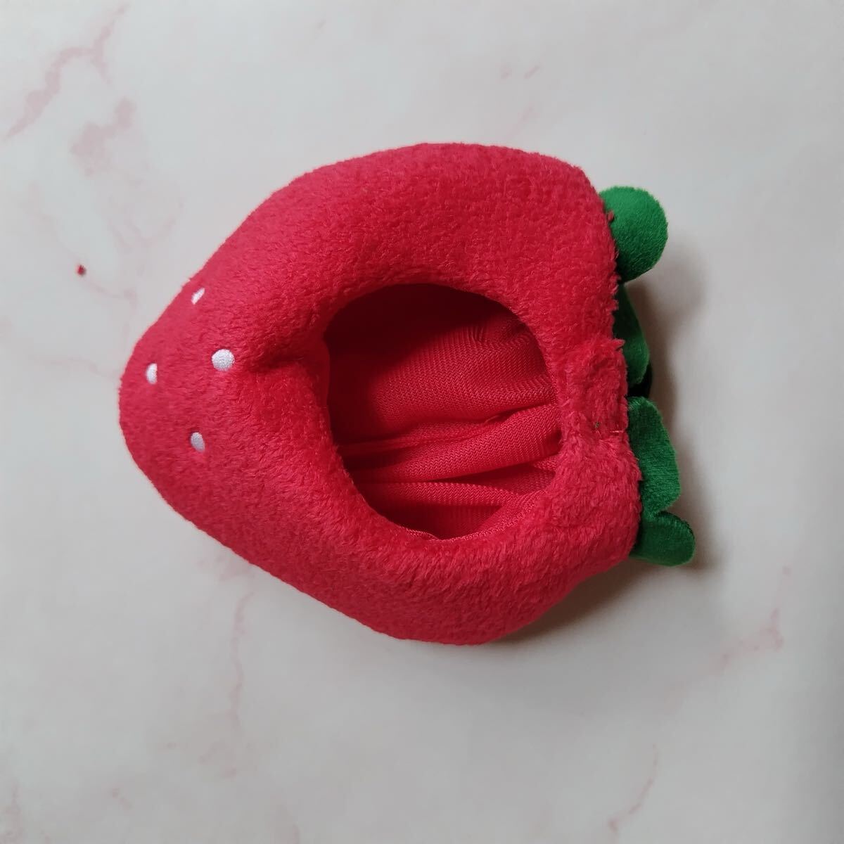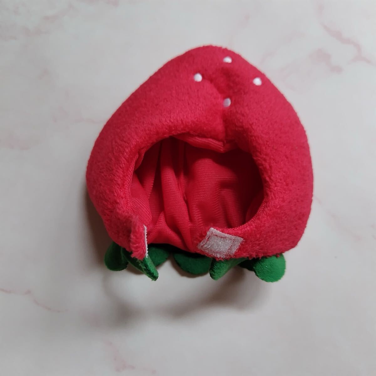 10cmのぬいぐるみにぴったりの、いちごモチーフの可愛らしい被り物です。