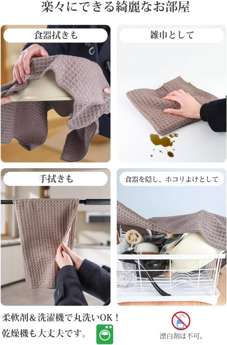 • 【食器拭きだけでなく、水切りかごの代わりにも】シンク周りの空間が最大限に節約できるような水切りを目指して、水切りタオルがやっと誕生しました。即、洗濯できて、水切りカゴのように定期的な掃除をしなくてもいいし、それに、キッチンの場所も取らないし、キッチンのスペースもかなり広くなれる吸水水切りふきんです。