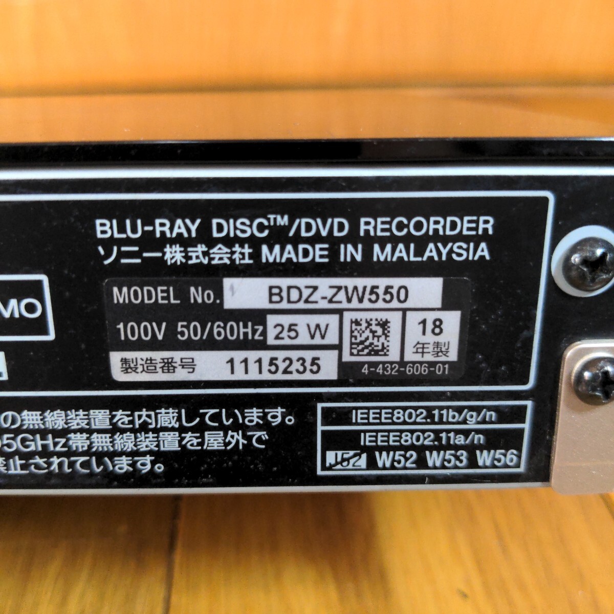 ソニー ブルーレイレコーダー BDZ-ZW550になります。