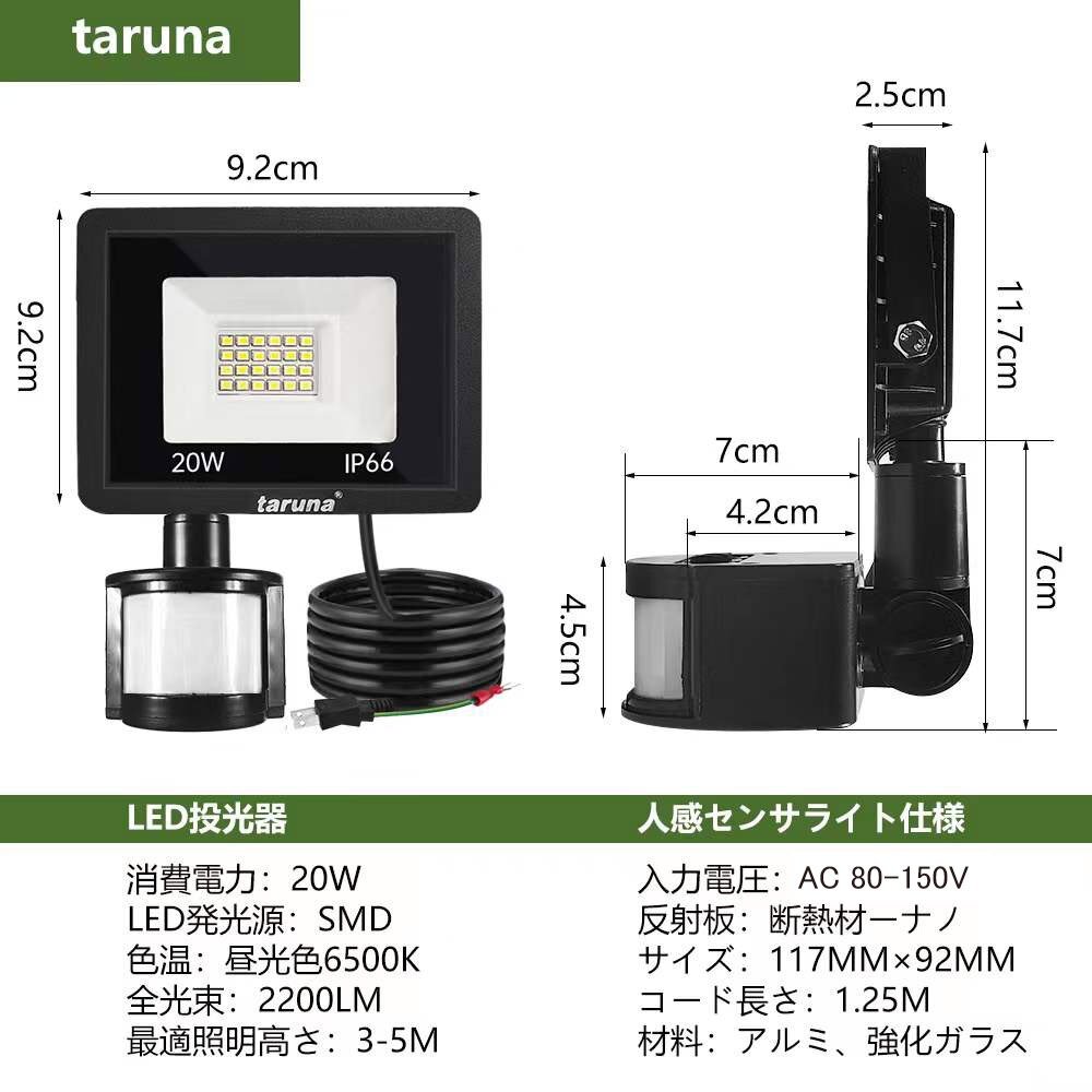 【商品詳細】 ◆センサー調整自由: センサー部は自由自在に調整できます。左右回転:360°、上下調整:180°、検知範囲:180°、感知角度がとても広いです。センサー裏面のつまみで点灯続け時間・検出距離・稼働方式も自由に調整できます。 「TIME」:ライトの点灯続け時間を3秒~10分間自由設定することができます。 「SENS」:センサーはPIR人感センサー検出器で、最大検出距離を2~10メートル自由設定することができます。 「LUX」:昼間モード:センサーが昼も夜も感応点灯します。夜間モード:センサーが夜間のみ反応します。 ◆IP66防水・省エネ: IP66防水防塵仕様で、悪天候でも耐えるように設計されて、屋根のない場所、外からの雨にさらされるような場所に設置しても安心です。高照度のランプビードが搭載されました。他のライトに比べ、同じ電源での条件下では、明るさがアップグレードし、省エネルギー効率が高くなりました。 ◆薄型で便利: 軽薄化で、コンパクトのランプなので、スペースを節約することができ、玄関、廊下、屋内、庭、倉庫、ガレンジ、家庭菜園、歩道など様々なシーンで非常に役に立ちます。そして、ライトは手間が掛かかなく、ネジで簡単に取り付けできます。 ◆長い寿命・満足保証: お客様を満足させるのはいつも私どもの主な目標です。購入日から12か月以内に故障があった場合、返品/交換は無料で行われます。製品についての質問があれば、或は故障や不具合が発生しましたら、私どもにご連絡ください、そして、こちらはすぐに応じます。 【保証】 ◆当商品は12っヶ月保証となります。 ◆お届けから1週間以内にご連絡のあった不良品の保証対応の送料は当方が負担いたします。 ◆保証期間内の不良品ですが、交換のみ対応しております。往復送料はお客様負担となります。在庫がない時だけ返金しますので、ご了承ください。 |