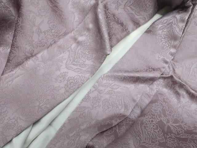 リサイクル商品ではございますが、バチ衿仕立ての大変良い状態のお品です。 地色は 紫です。 1枚目の画像が近いお色かと思われます。 素材は正絹です。 |