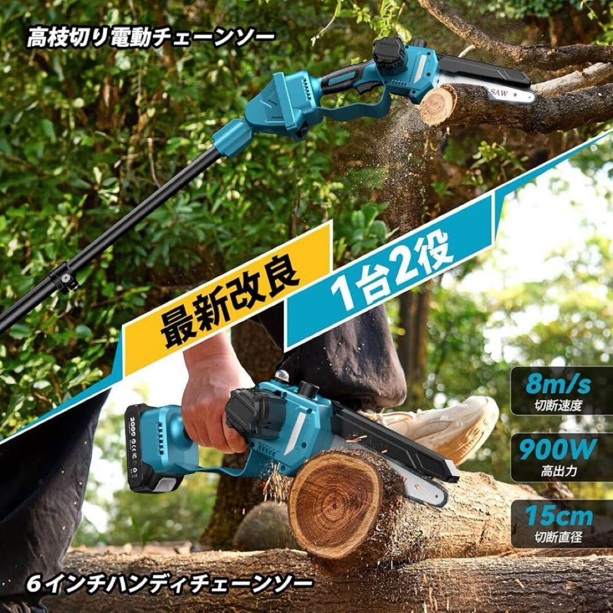 高枝電動チェーンソー コードレス 充電式 高枝切り ハンディーチェーンソー 新品