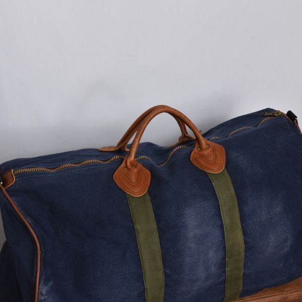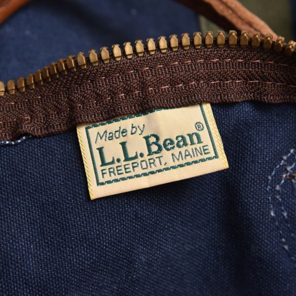 色落ち◎ USA製 80s L.L.Bean ネイビー × OD レザーハンドル ダッフルバッグ ヴィンテージ ボストンバッグ 2Way アウトドア