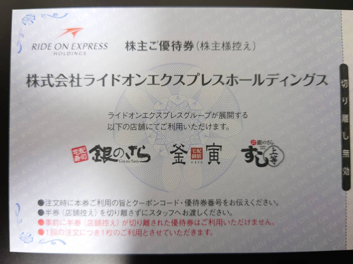 ライドオンエクスプレス株主優待の2,500円券5枚です。