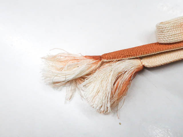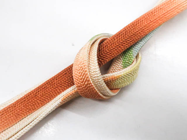 リサイクル商品のため、帯揚げの所々に点シミ、帯締めの裏に染色にじみ、スレがございますが、ご使用頂けると存じます。 |