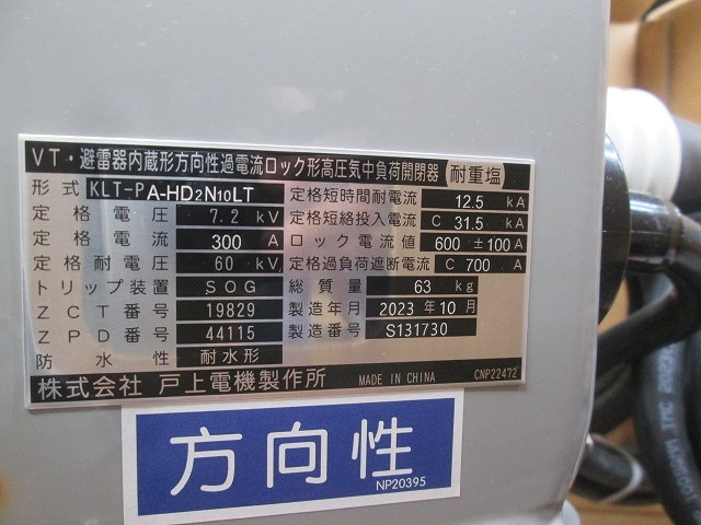高圧交流気中負荷開閉器 VT・避雷器内蔵形方向性過電流ロック形(撮影のため開梱) 戸上電機製作所 KLT-PA-HD2N10LT