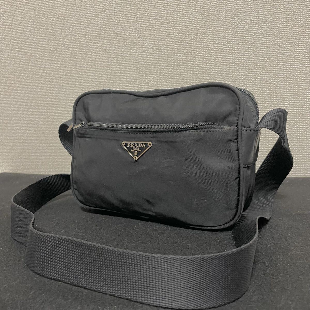 1円スタート! PRADA プラダ ナイロン ショルダーバッグ カメラバッグ 三角ロゴ 斜め掛け クロスボディ レザー テスート ブラック NERO