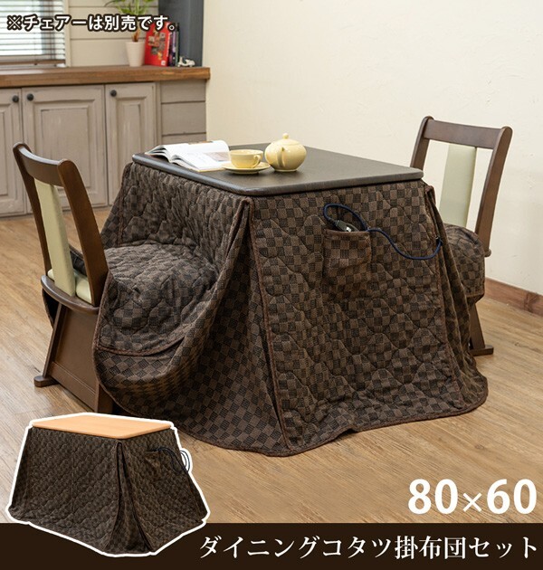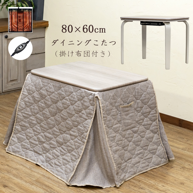 | サイズ | こたつ(W)幅80cm×(D)奥行き60cm×(H)高さ65.5cm 天板厚:約24mm 幕板の厚み:約18mm 脚の厚み:約32mm 布団(W)幅216.5cm×(D)奥行き196.5cm |
