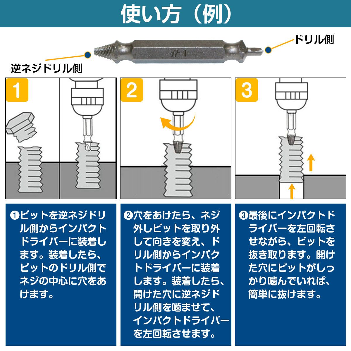 なめた ネジ 外し 4本セットエキストラクター ボルト 逆タップ 折れた 潰れた ネジ 抜き ドライバー ビット 工具 インパクト