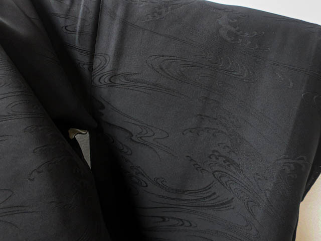 リサイクル商品のため、羽裏にしみがございますがご着用いただけると存じます。 地色は 黒です。 1枚目の画像が近いお色かと思われます。 素材は正絹です。 |