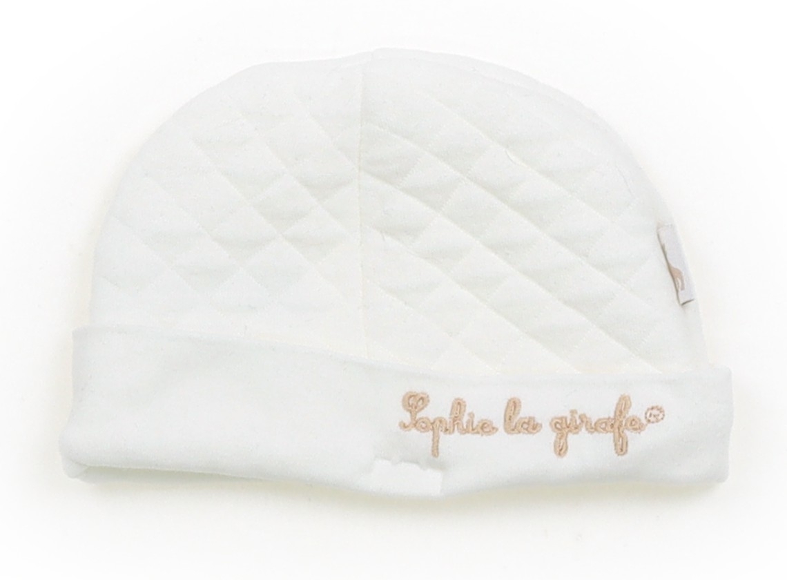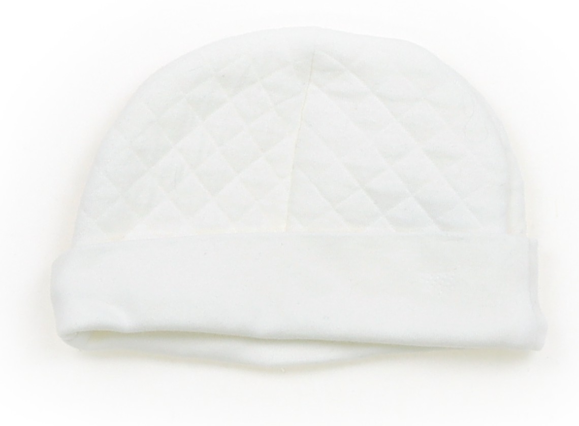 サイズ表記はありませんが、実寸では8~9cm位です。帽子(被り口の実寸約32cm)がセットになっています。カットソー素材のキルト風生地です。使用感はありますが、きれいな状態です。