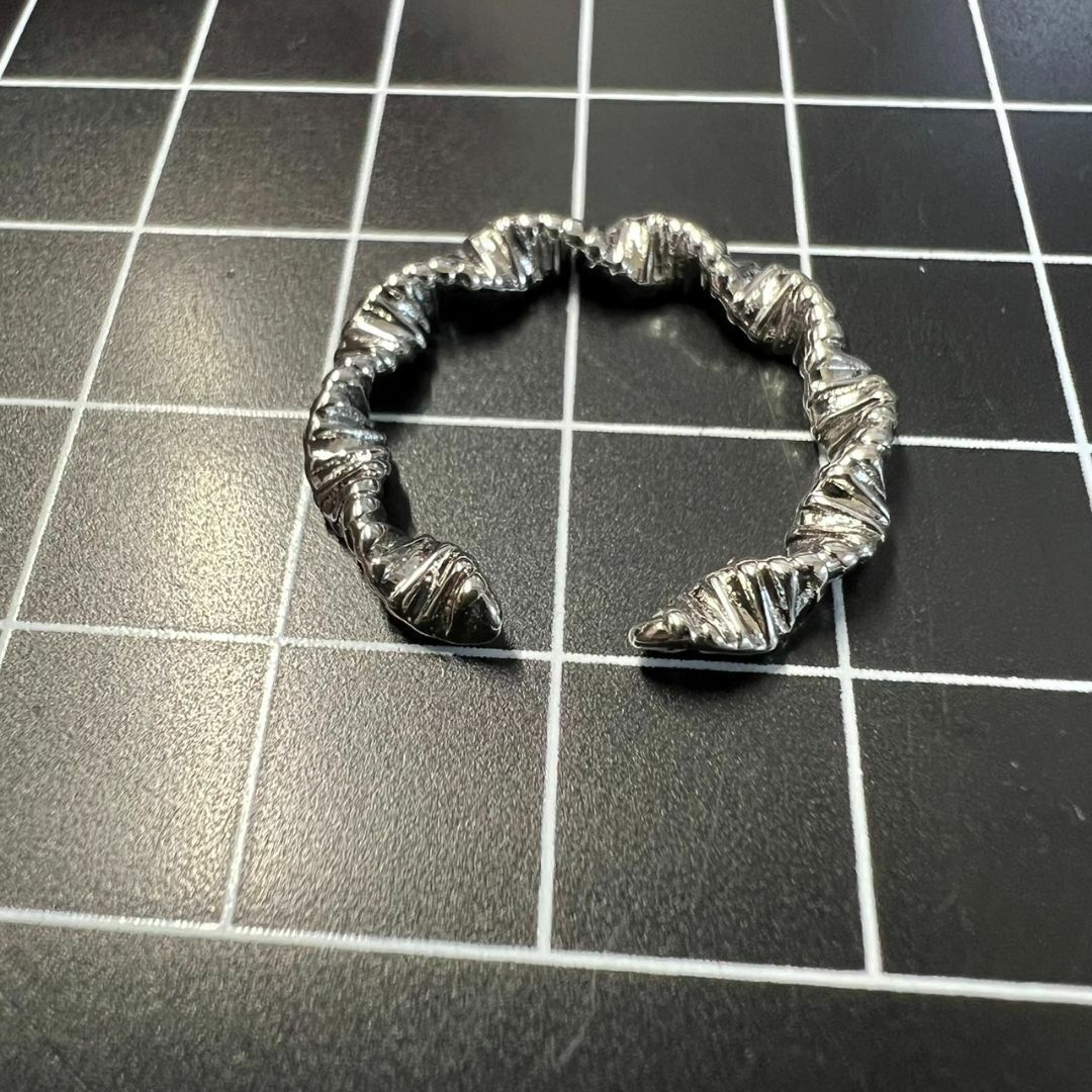 ひねりの入った個性的なシルエットのシルバーリングです。