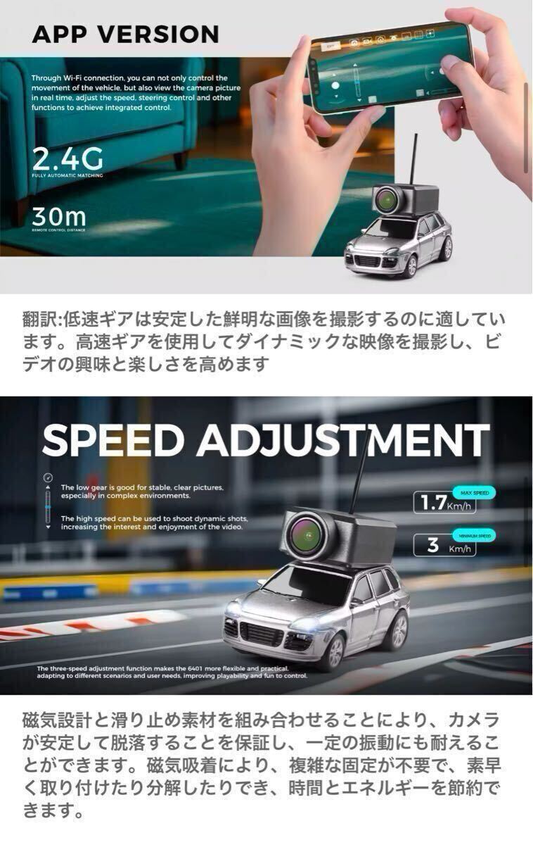 7.APPには、写真、ビデオ、VRの撮影、車の前進/後退、左右のステアリングの制御などの機能があります。