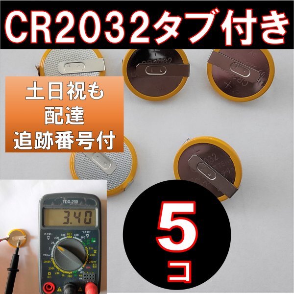 追跡番号 土日祝日配達 CR2032 タブ付き リチウムボタン電池 5個