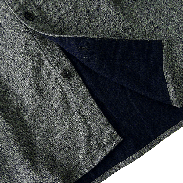 2枚の生地を貼り合わせることで厚みを持たせたり、機能面やデザインとしても個性的なダブルフェイス生地を採用。 表面・裏面ともに肌触りの良いコットン100%素材を使用しております。 季節の変わり目に非常に重宝いたします。 |