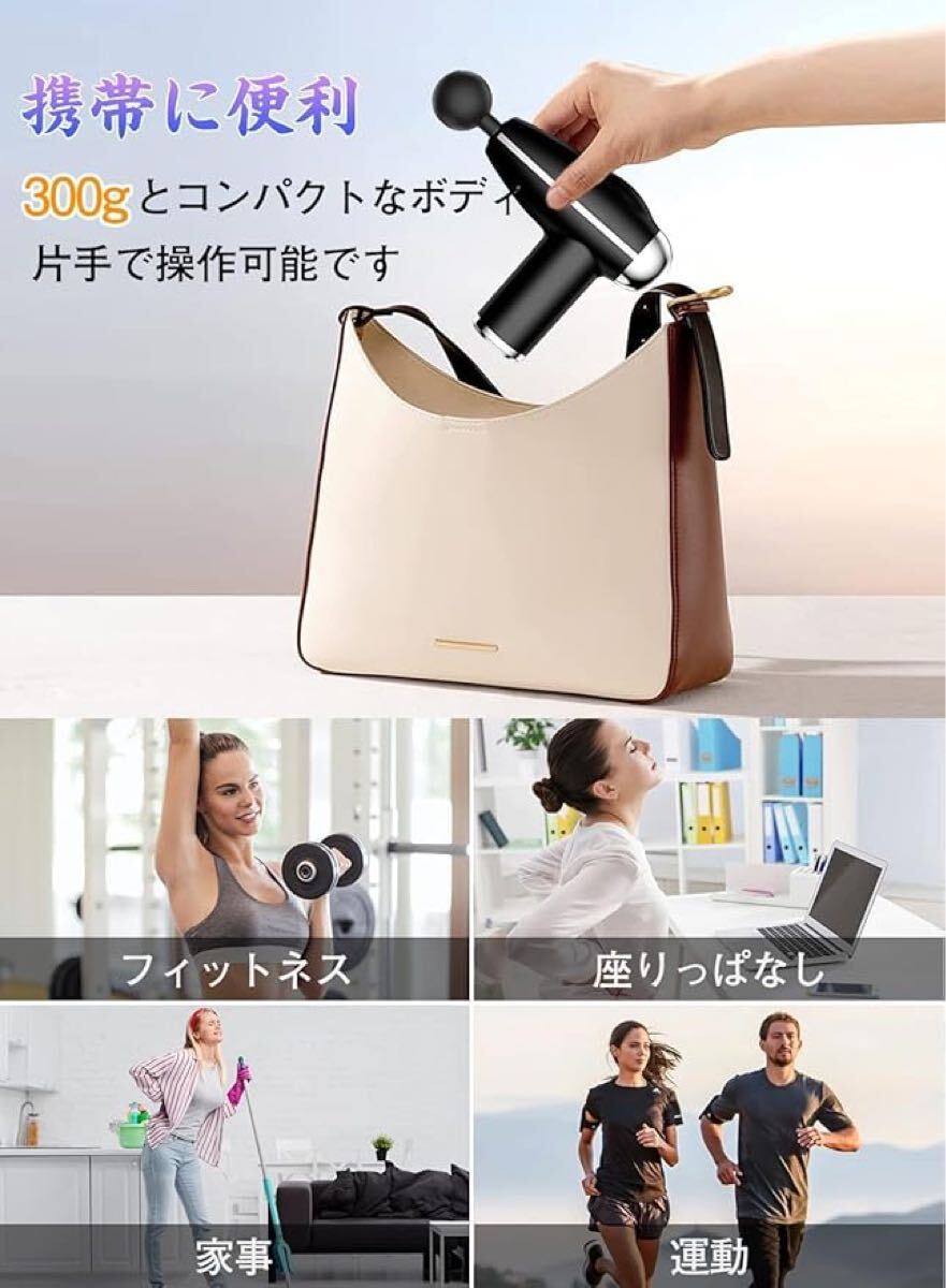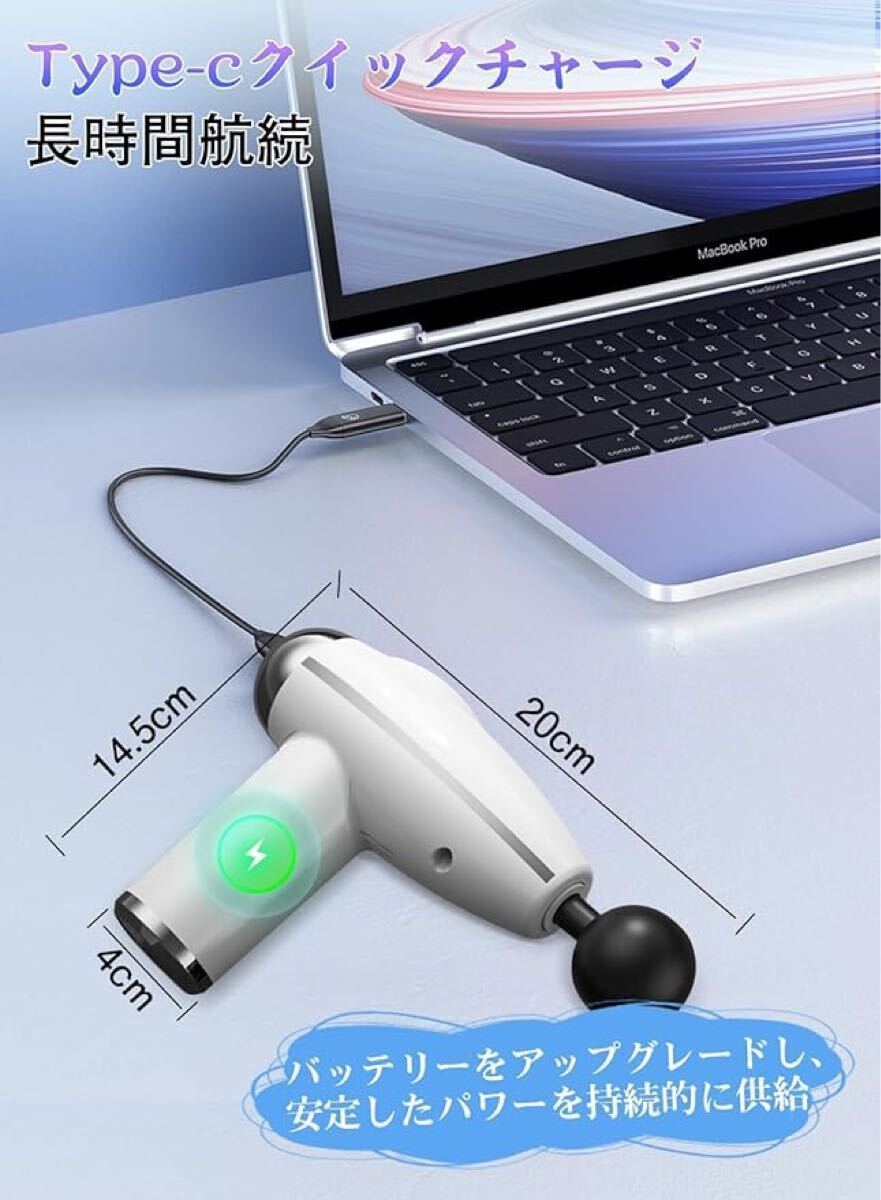 筋膜リリースガン電動ガン ハンディガン Type-C充電 小型 軽量 黒
