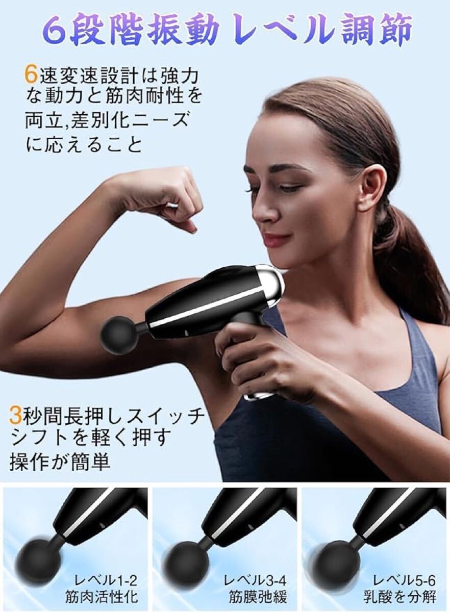 【4種類の筋膜リリースヘッド】多機能ヘッドを搭載し、ボディパーツごとにカスタマイズされた体験が可能です。振動の強さを6段階で調整できるので、初心者からプロまで、自分の好みに合わせて簡単にカスタマイズできます。この柔軟性は、ユーザー一人ひとりが自分に最適な体験をすることを保証し、製品の適合性と快適性を高めています。