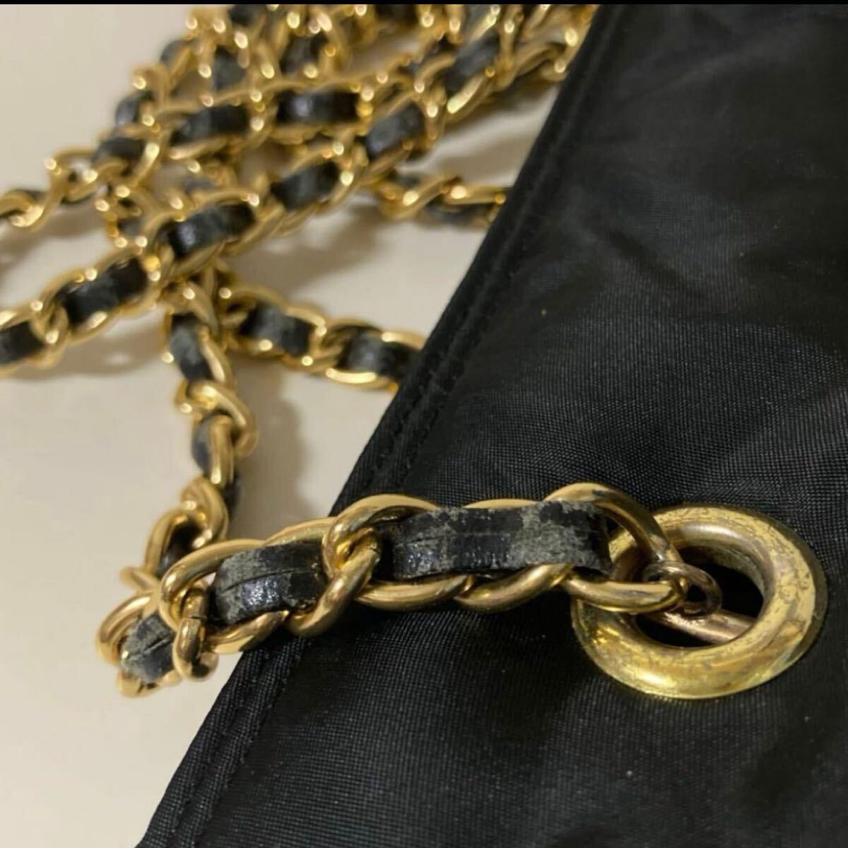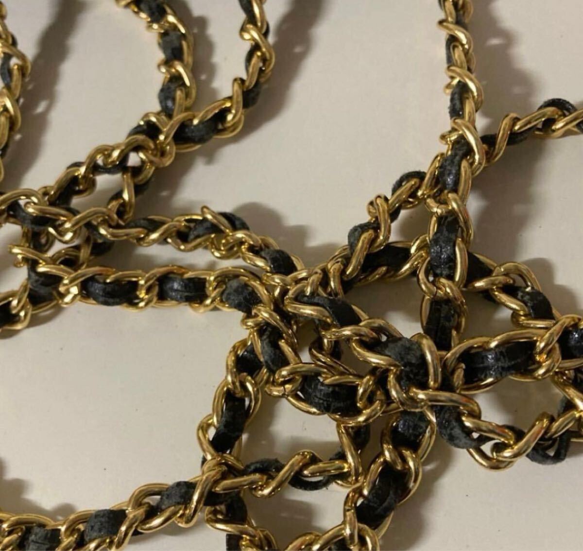 チェーンの皮の部分をよく見ればスレあります。(写真参考)あまり目立たないです。