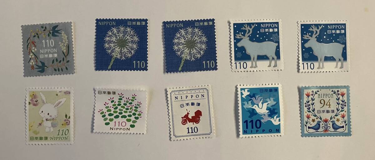 • 未使用切手バラ(封筒・葉書はがし 裏面糊なし) 計55枚、合計4264円分