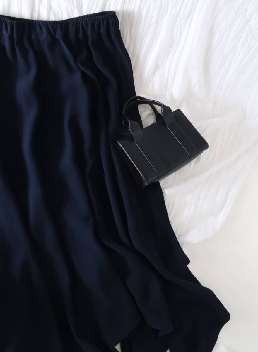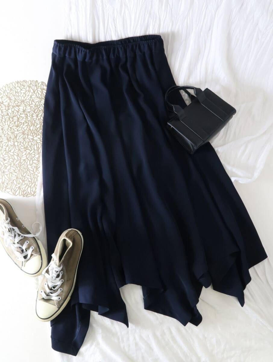 イレギュラーなヘムデザインが目を惹くフレアスカート。表情豊かなイレギュラーヘムデザインが、おしゃれ度を高めてくれます。ウエスト部分はゴム仕様になっているので、ストレスフリーな穿き心地も嬉しいポイントです。