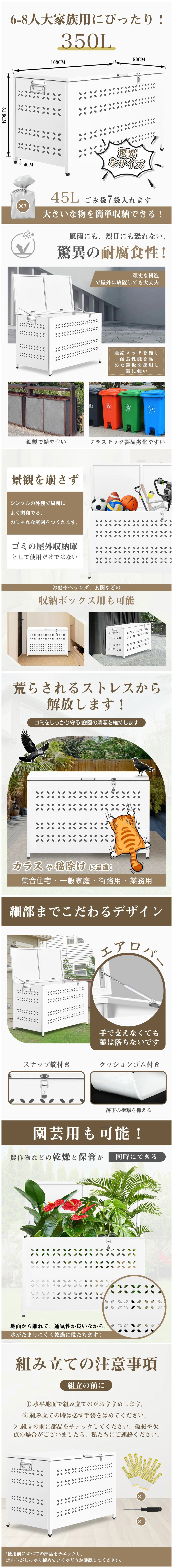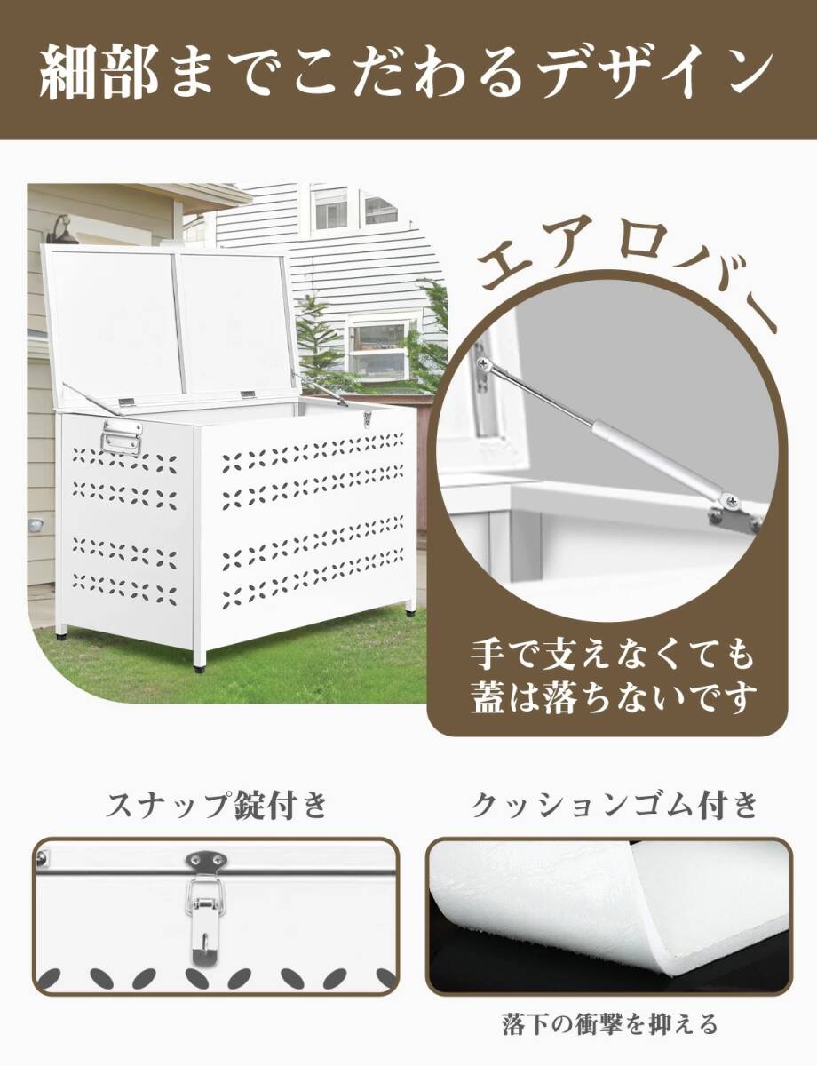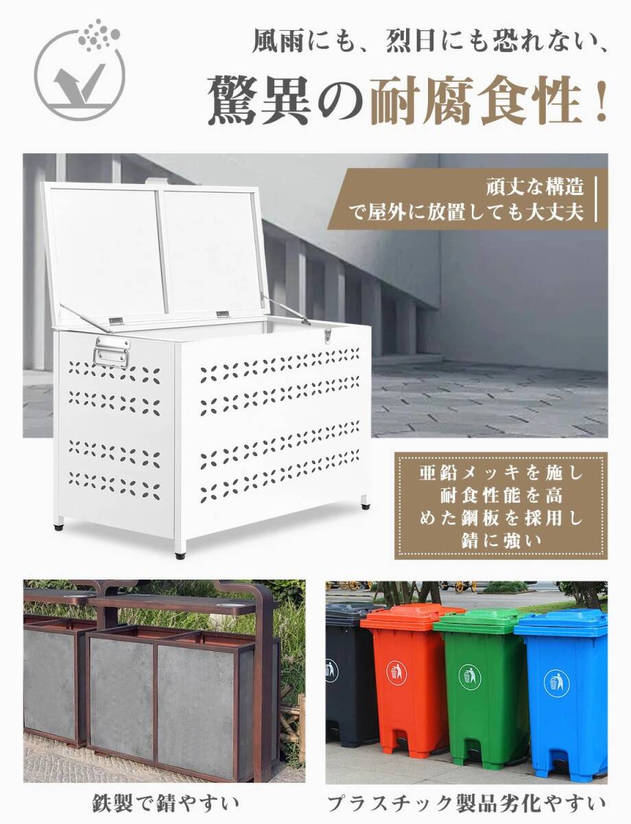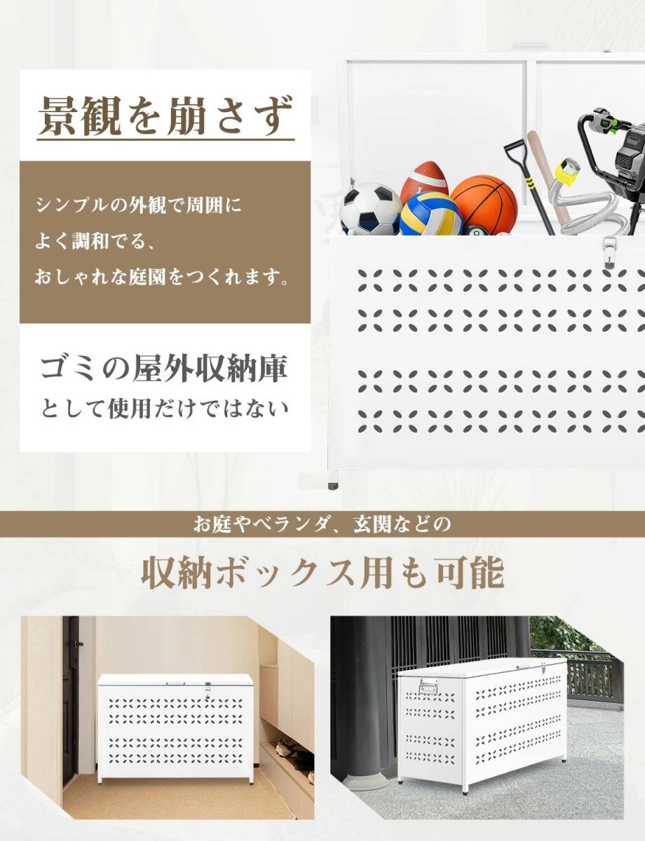 ゴミの屋外置き場として使用だけではなくて、お庭やベランダ、玄関などの収納ボックスとしても適用します。見た目も清潔感があり、シンプルなデザインなので場所を取らずに収納できます。。住宅を選ばず調和してくれます。
