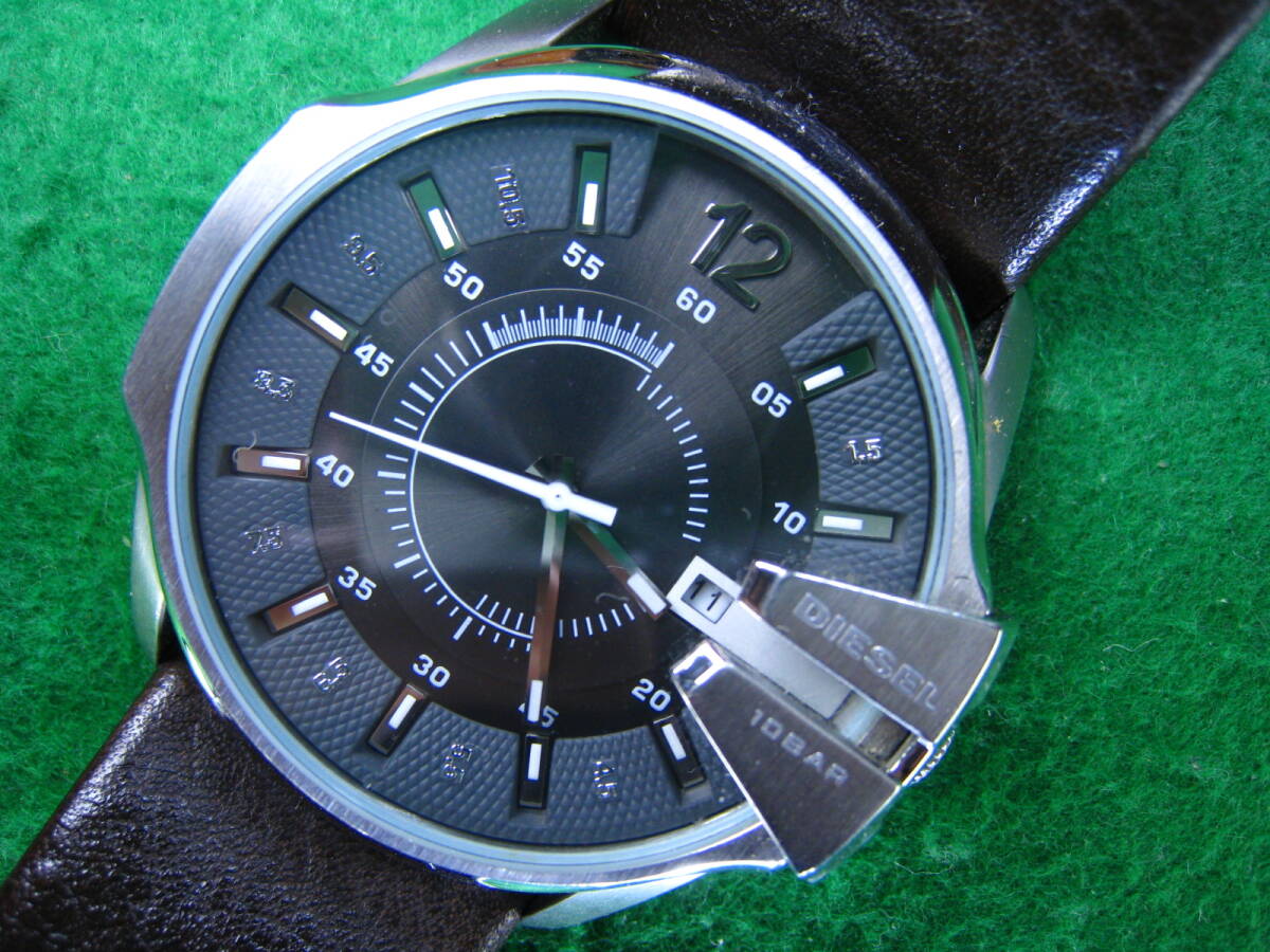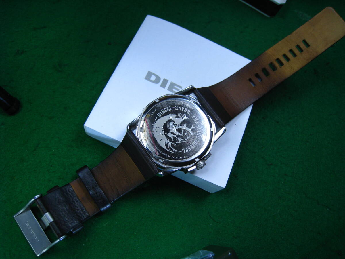 とても個性的でオシャレな DIESEL メンズ デイトQZ ダークグレイ文字盤 専用BOX入り 取説有 です。使用感は少ないと思います。風防は目視では無キズでクリアに見えます。ケースは目に付くようなキズやスレは見られません。裏蓋は保護フィルムが張ったままです。お理事なうレザーベルトは多少の使用感はありますが大きなキズやイタミは見られず使用は問題ありません。専用BOXも大きなイタミは見られずキレイです。ただ大きいのでゆうパックのみの発送になります。BOXが必要なければ言ってください。普段使いにビジネスにかなりオシャレで目を引く時計です。
