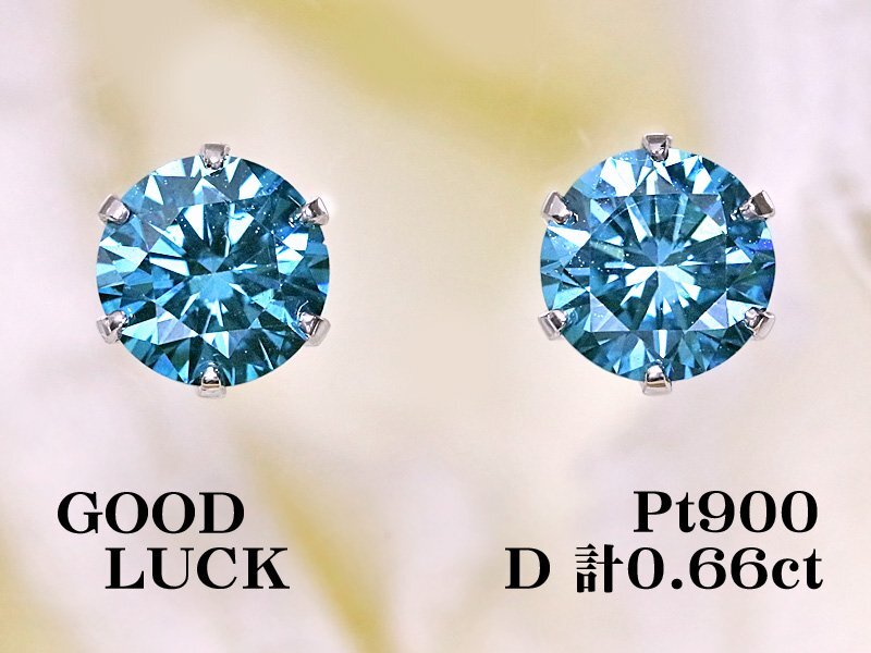 【新品・未使用】1円~最落無 天然ダイヤモンド 計0.66ct,ミニ鑑別付,プラチナ 大粒 トリートブルーダイヤモンド スタッドピアス