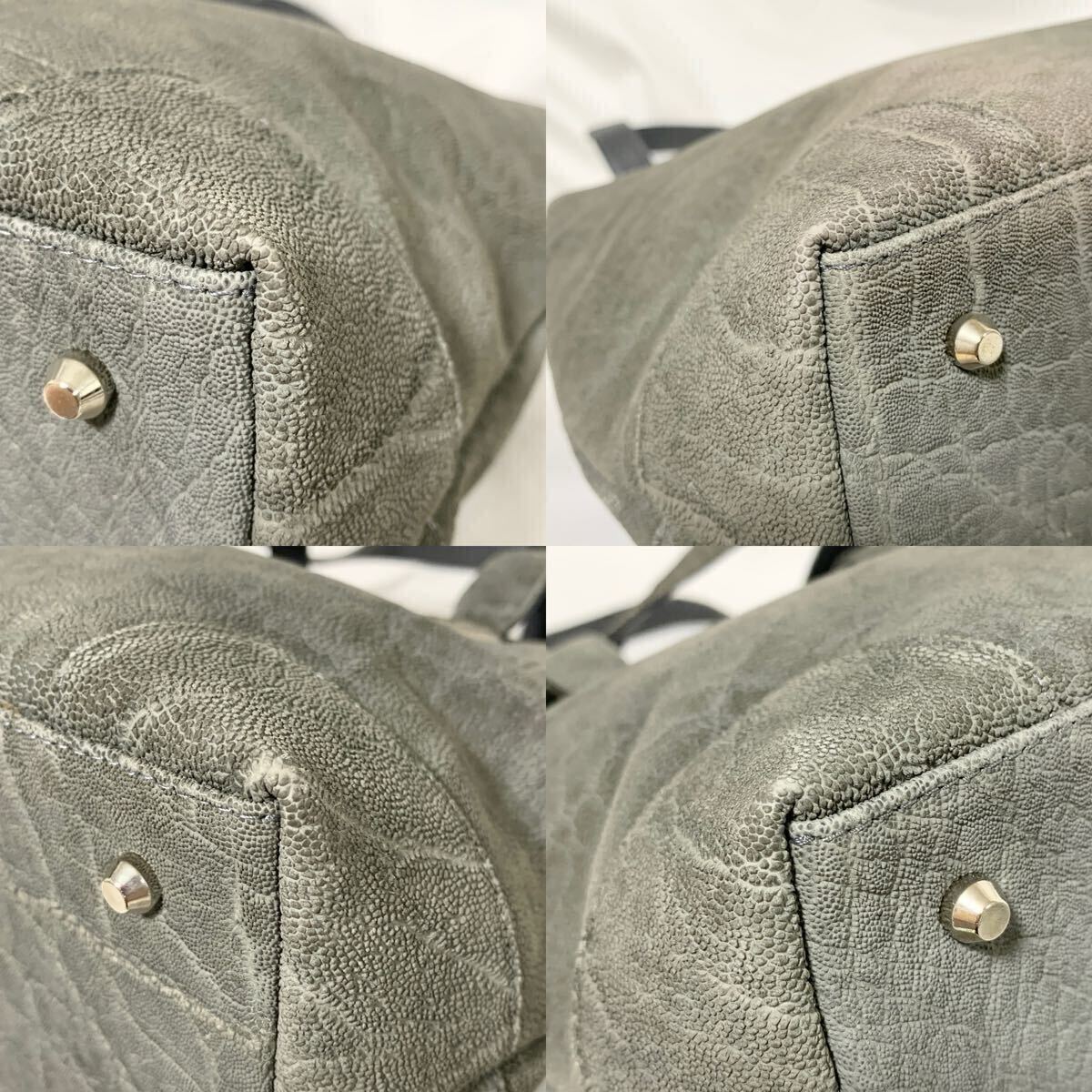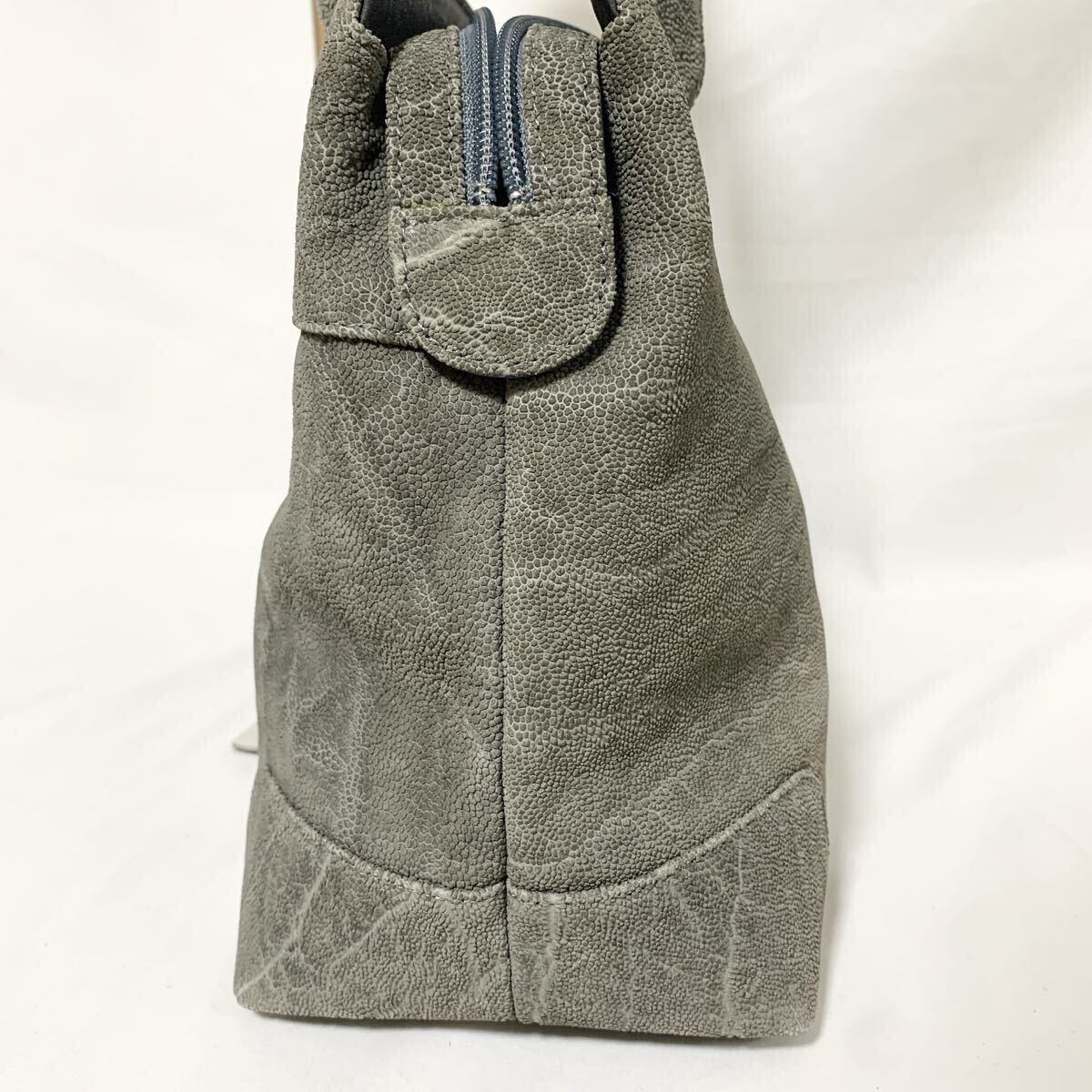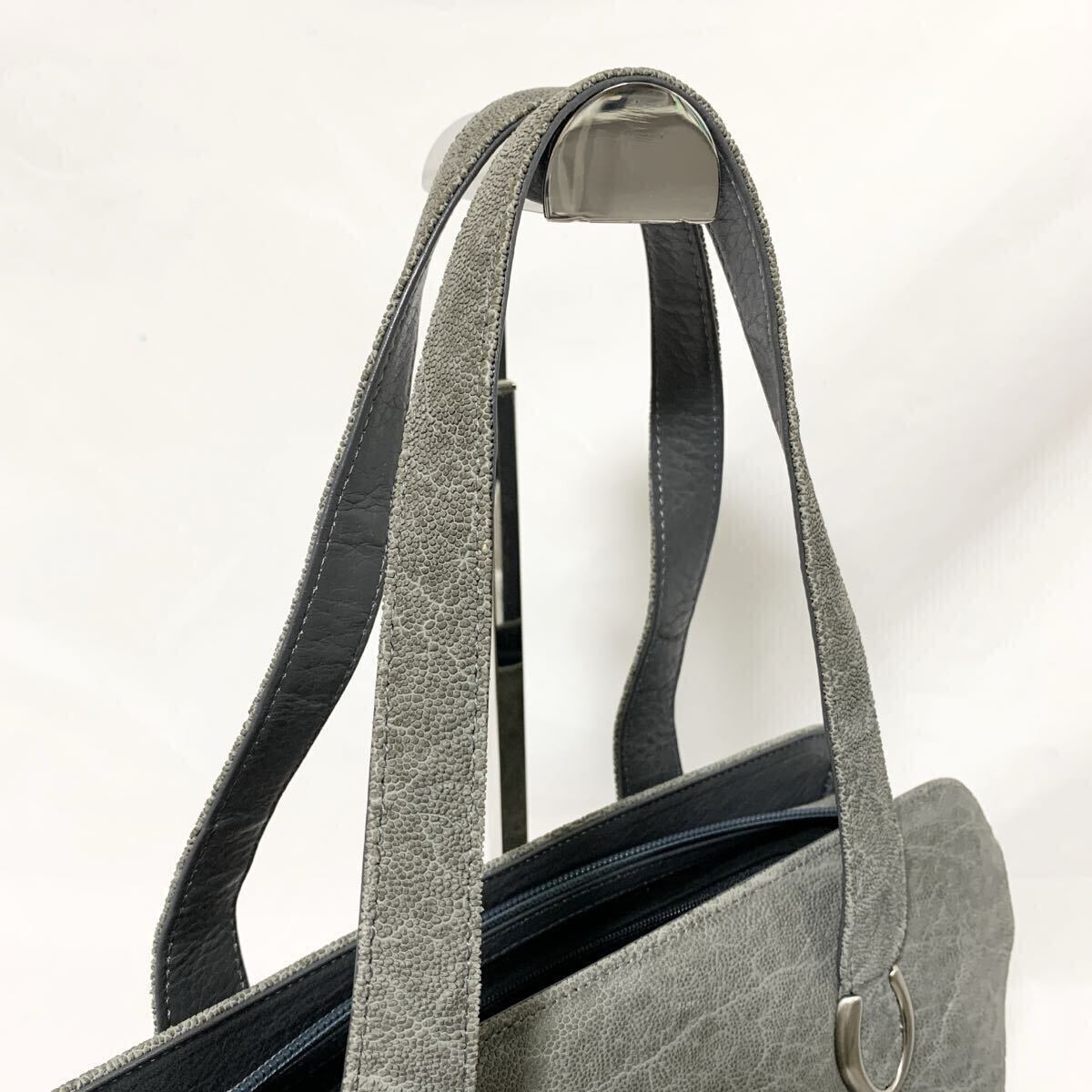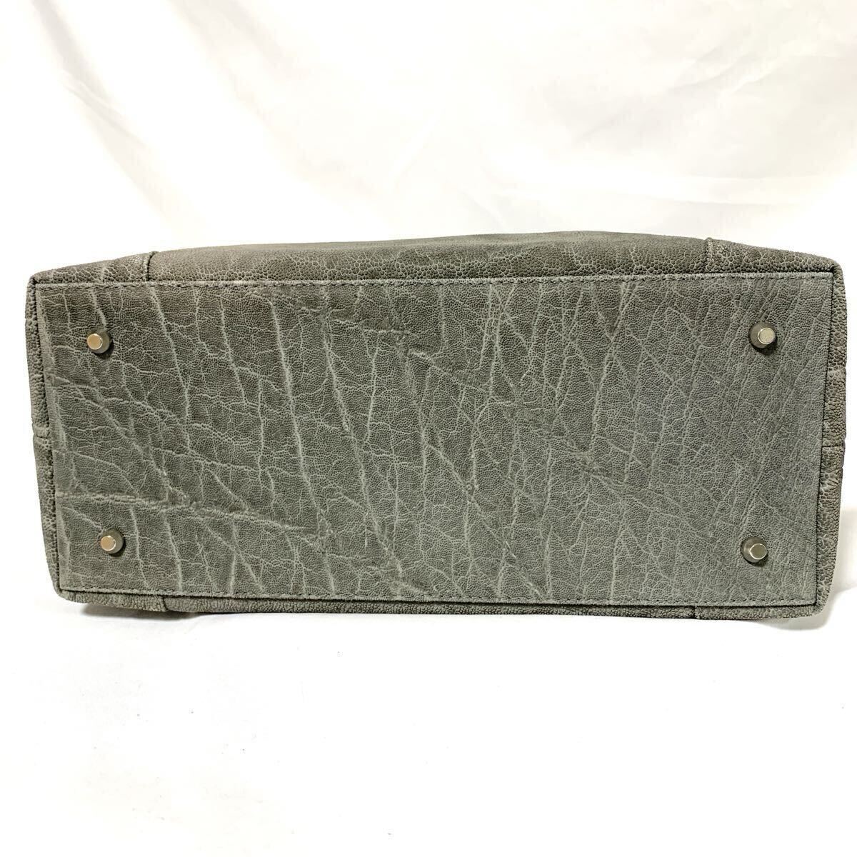 1円 美品 エレファントレザー トートバッグ ハンドバック ゾウ 像革 パスケース付 グレー 灰色 シルバー金具 メンズ レディース 肩掛け可能