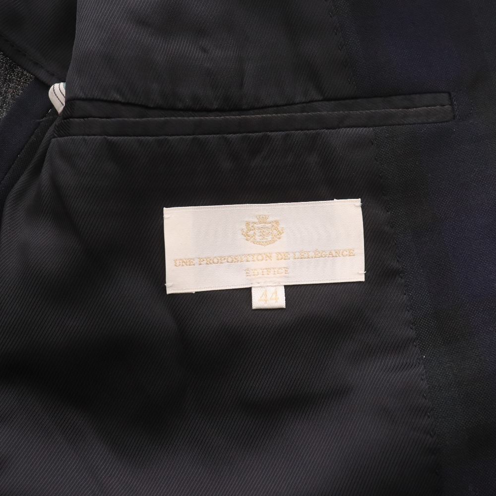 EDIFICE エディフィス テーラードジャケット 長袖 アウター 襟 ボタン 胸ポケット チェック柄 日本製 メンズ 44 (S相当) ネイビー系 付属品:写真のものが全てです ●表記サイズ:44 ○実寸 着丈:72cm 肩幅:41cm 身幅:45.5cm 袖丈:56.4cm ⇒ アパレル商品のカラー基準・採寸方法・海外サイズ換算表 (参考)トルソー(マネキン)は男女ともMサイズです。 素材:表地:ポリエステル55%毛45% 裏地:キュプラ100% | ||||||||||||||||