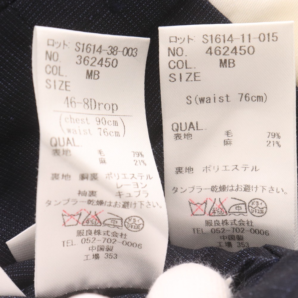 HAVANA Marzotto ハバナ マルゾット スーツ セットアップ 上下 長袖 ジャケット アウター 46-8Drop S〜M ボトムス パンツ S ネイビー系 付属品:写真のものが全てです 【上着】 ●表記サイズ:46-8Drop ○実寸 着丈:71cm 肩幅:43cm 身幅:51cm 袖丈:59cm 【パンツ】 ●表記サイズ:S ○実寸 ウエスト周り(平置き幅×2):81cm 股下:73.5cm わたり:27cm すそ幅:17.9cm 前股上:22cm ヒップ:46.6cm ⇒ アパレル商品のカラー基準・採寸方法・海外サイズ換算表 (参考)トルソー(マネキン)は男女ともMサイズです。 素材:表地:毛79%麻21% 裏地胴裏:ポリエステルレーヨン 裏地袖裏:キュプラ | ||||||||||||||||