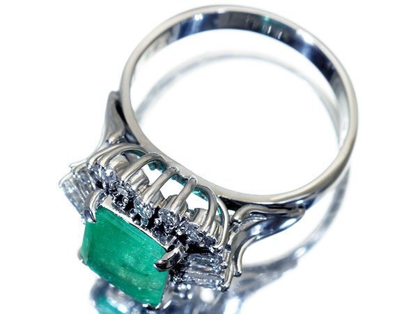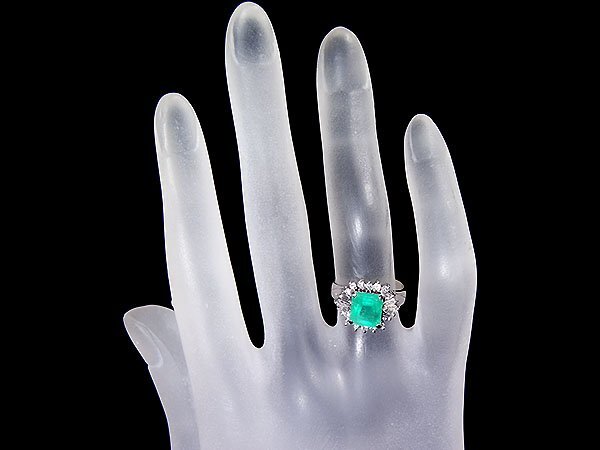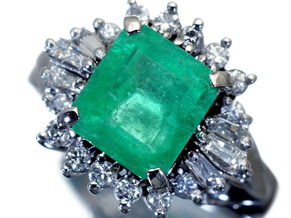 綺麗な色合い放つ良質天然エメラルド1.74ct&ダイヤモンド総計0.38ctを素敵に宝飾した、高級Pt900リングを1円から特別大放出致します!