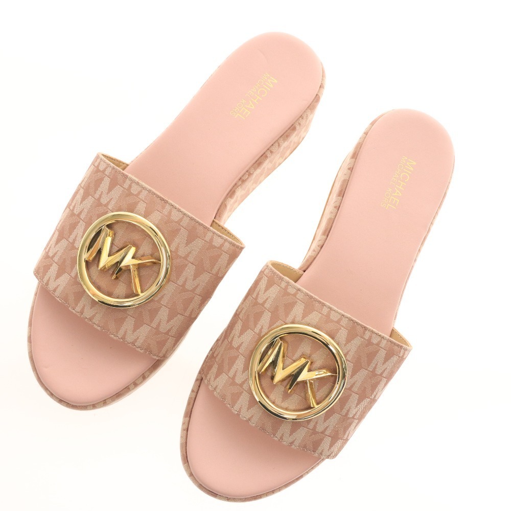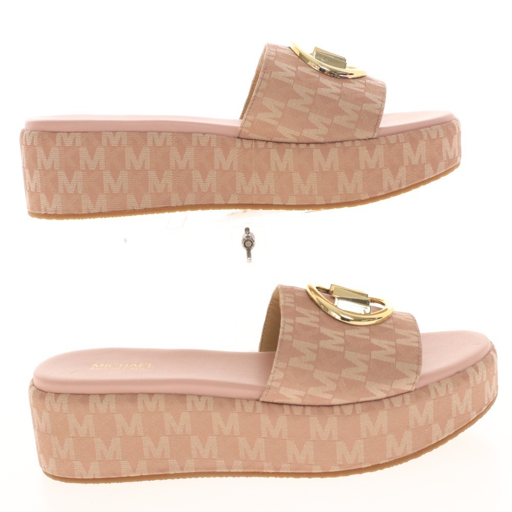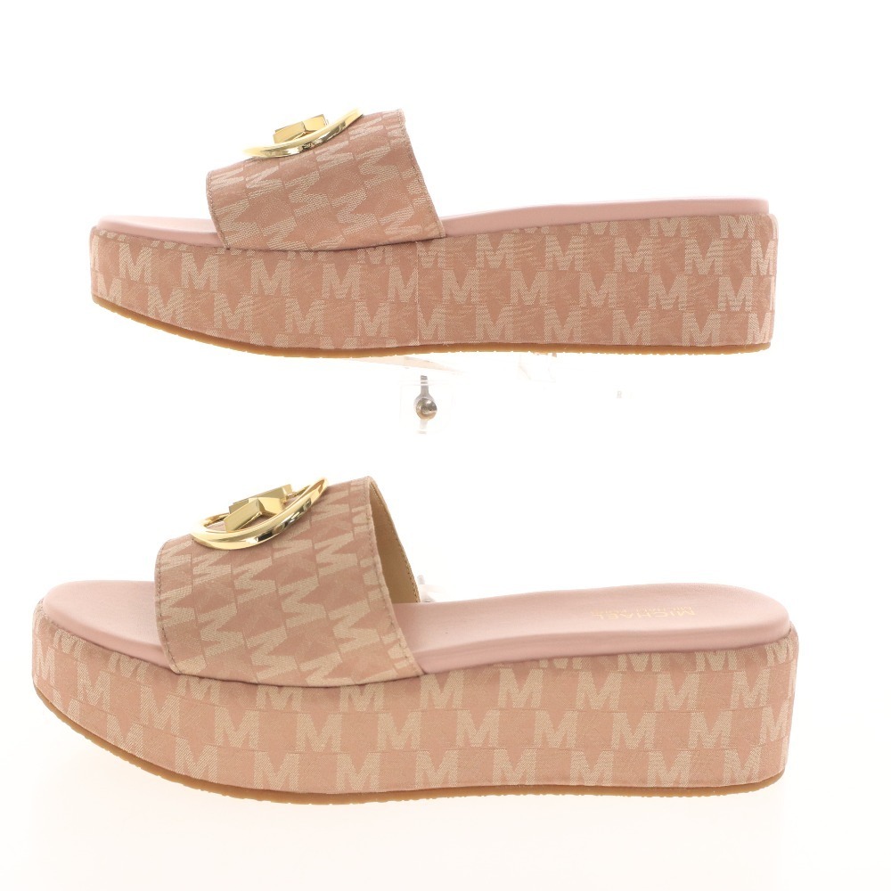 マイケルコース サンダル ミュール シューズ 靴MKシグネチャー ウェッジソール ロゴ レディース 7M (24cm相当 )ピンク 付属の箱は本商品のものではございません。 付属品:写真のものが全てです ●表記サイズ:7M ○実寸 アウトソール:25.7cm くつ幅:9cm ヒール(かかと高さ):5cm ⇒ アパレル商品のカラー基準・採寸方法・海外サイズ換算表 (参考)トルソー(マネキン)は男女ともMサイズです。 素材:品質の記載は見受けられません。 | ||||||||||||||||