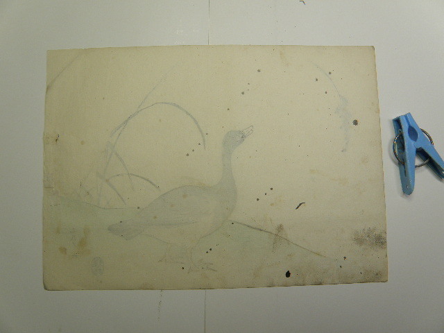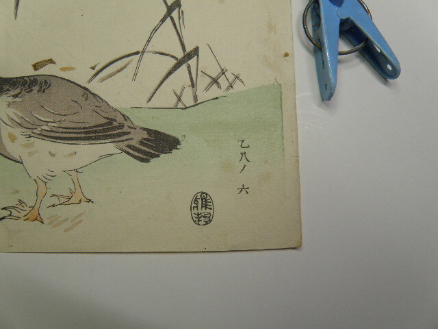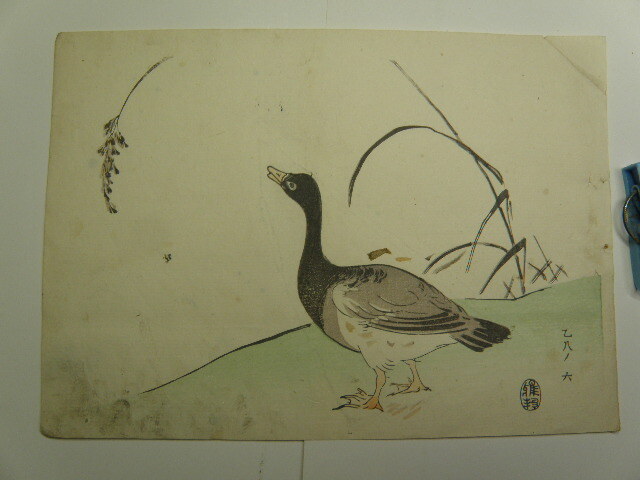 雅移?作:署名入 鴨図 多色摺木版画 真作 裏打トリミング無 用紙サイズ約17.5x25cm 大正~昭和初期頃か? 送180 見本帳の一葉か?