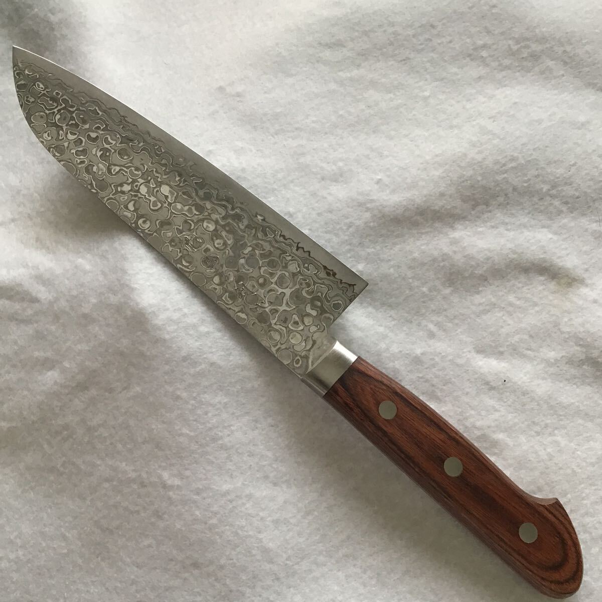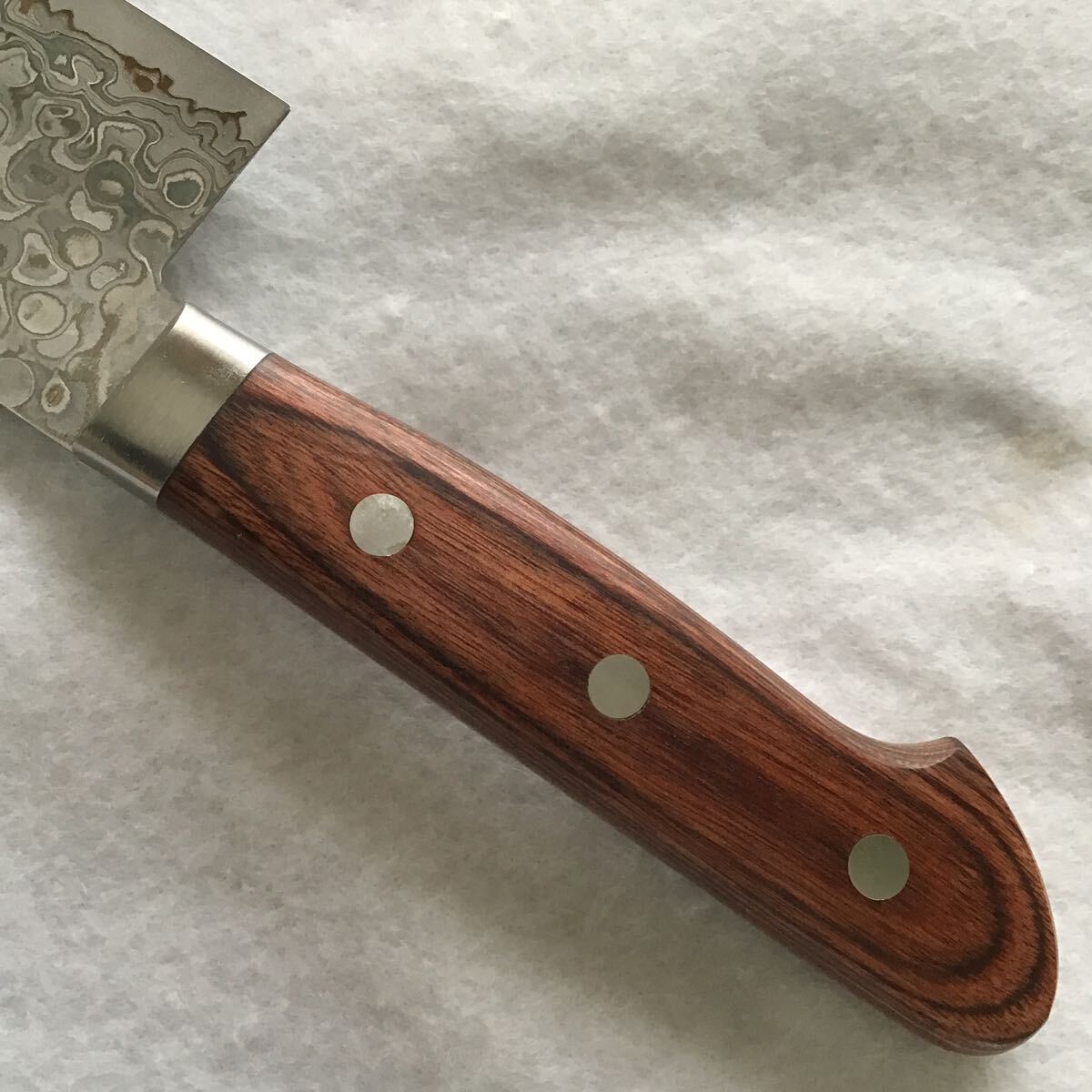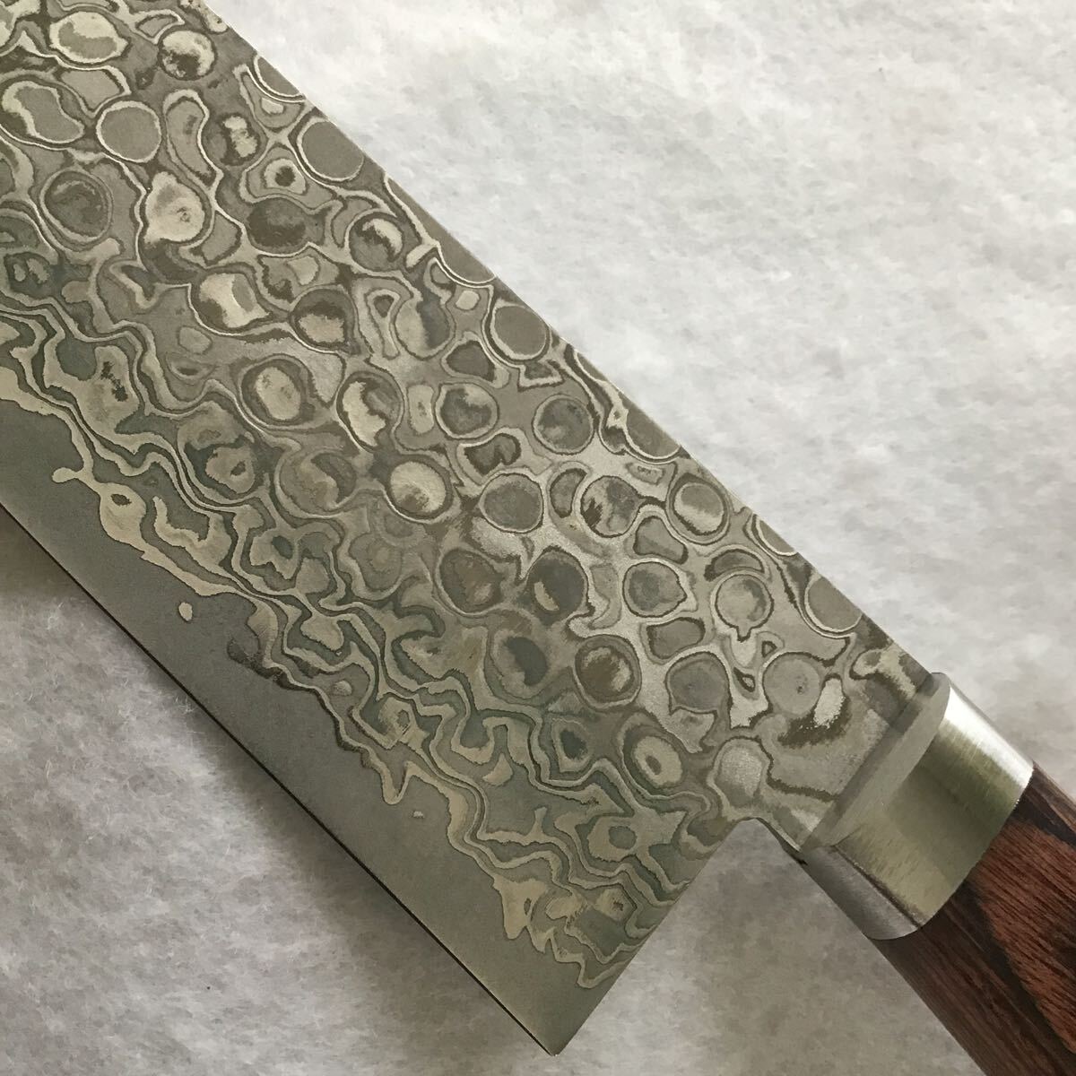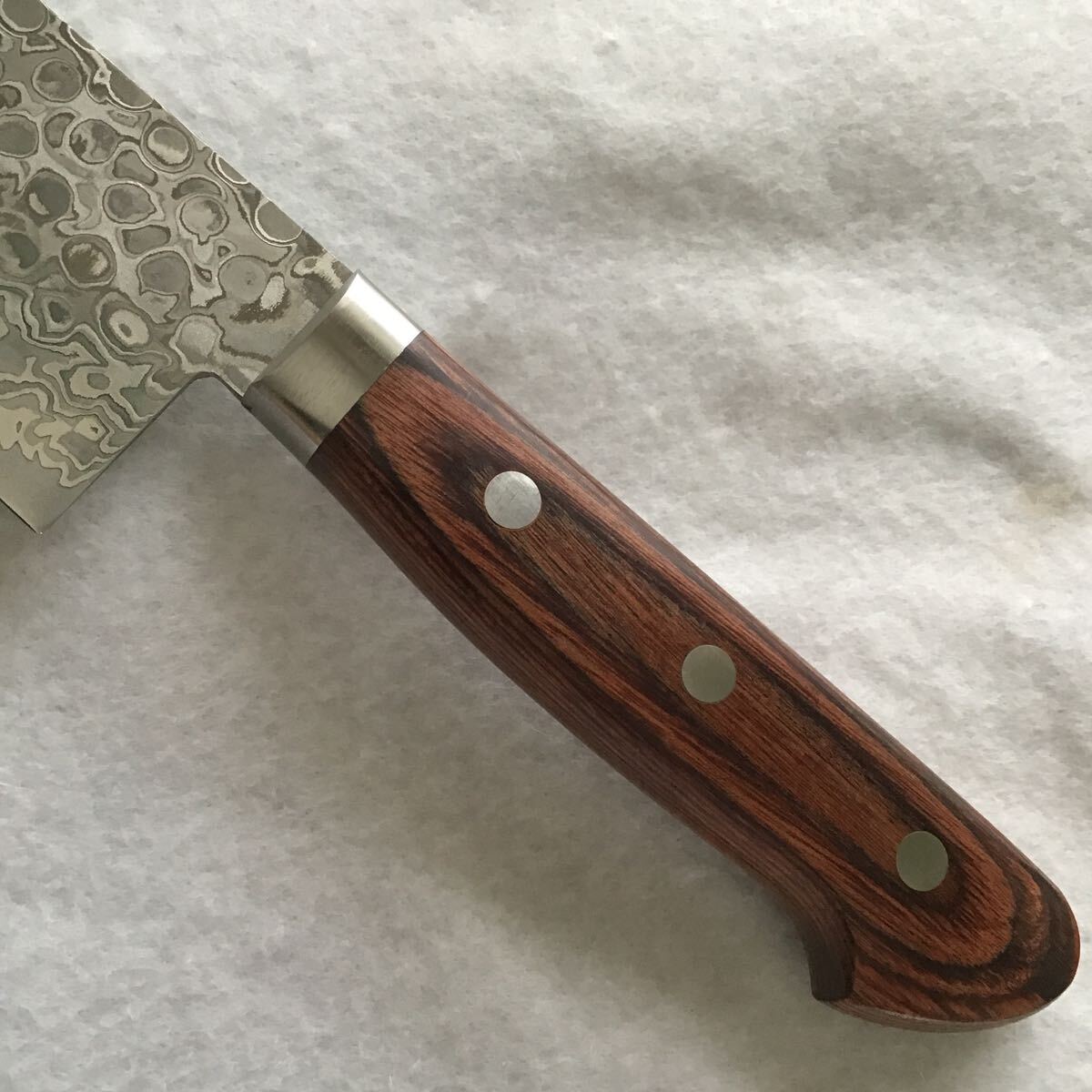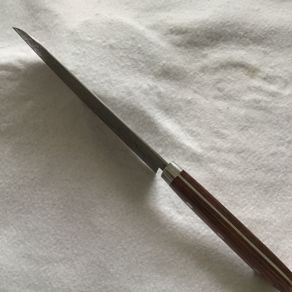 ニッケル銀三鋼を本鍛造銀染した一品です。業務用に軽量仕上げしていますので刺身の薄造りも可能です。もちろん肉も野菜もスパッと!
